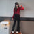 HBC040924-10 طقم بناتي شتوي مبطن فرو قطعتين ( جكيت + بنطلون) Red