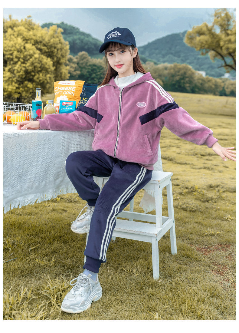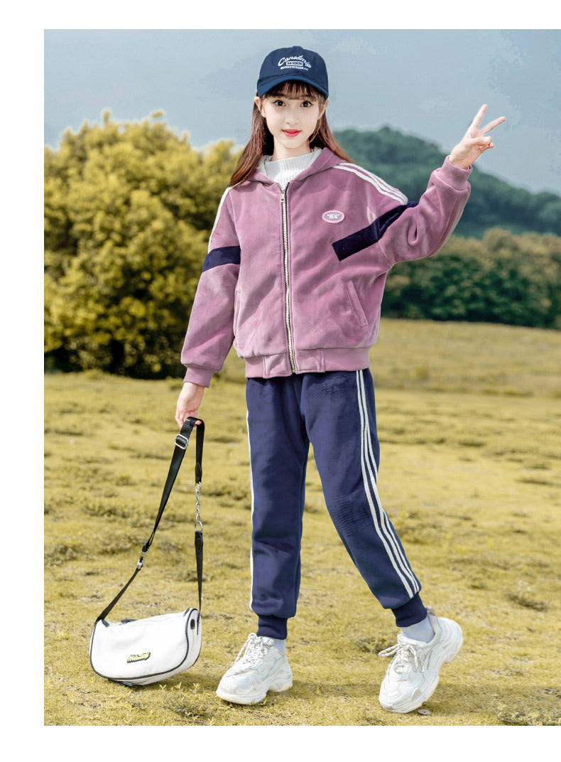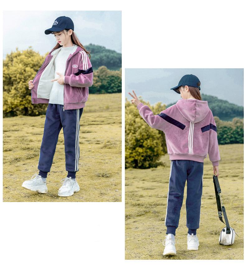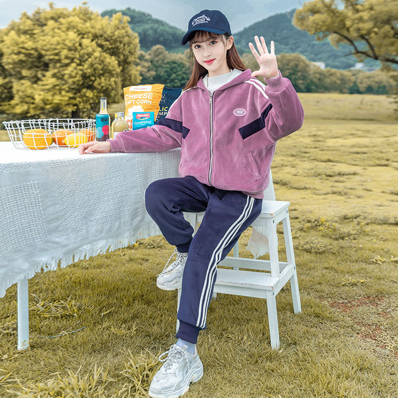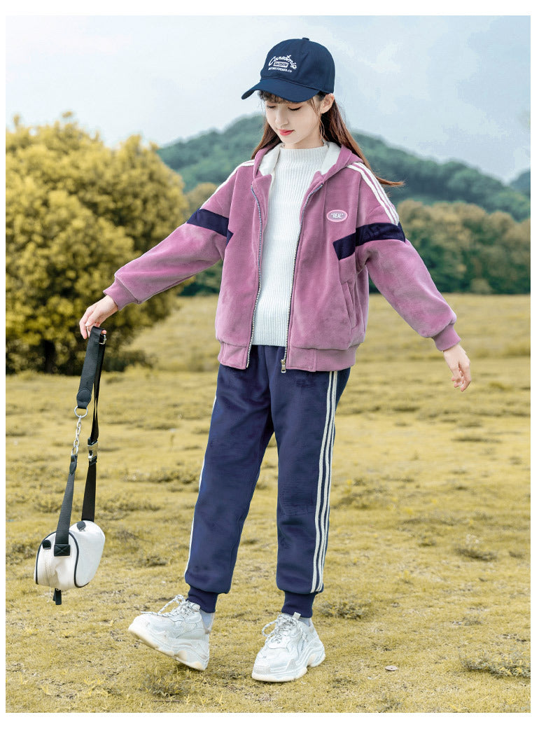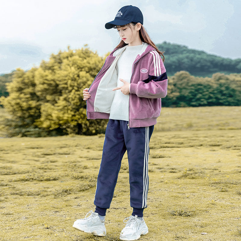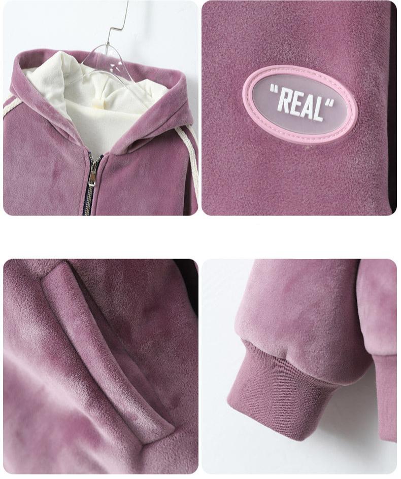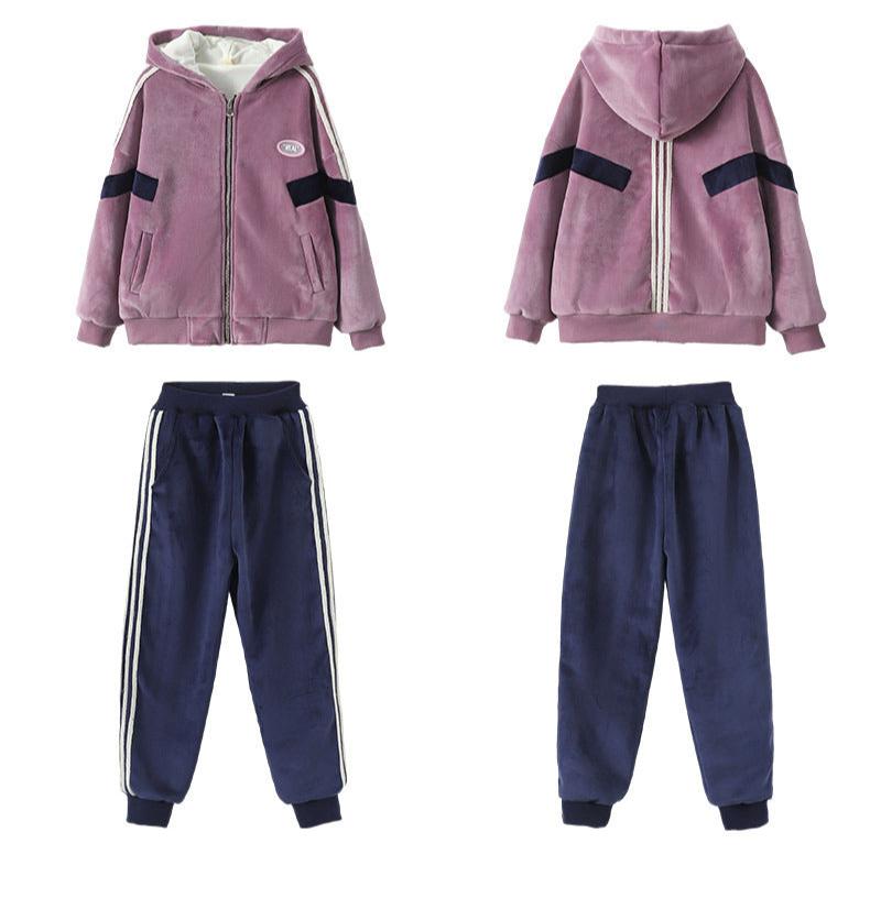 طقم شتوي مخمل ومبطن فرو بالكامل قطعتين ( جكيت + بنطلون)