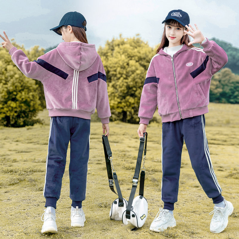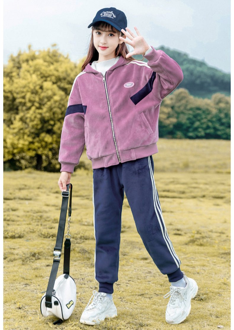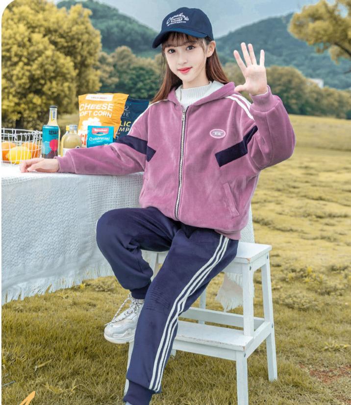 HBC040924-12 طقم شتوي مخمل ومبطن فرو بالكامل قطعتين ( جكيت + بنطلون)