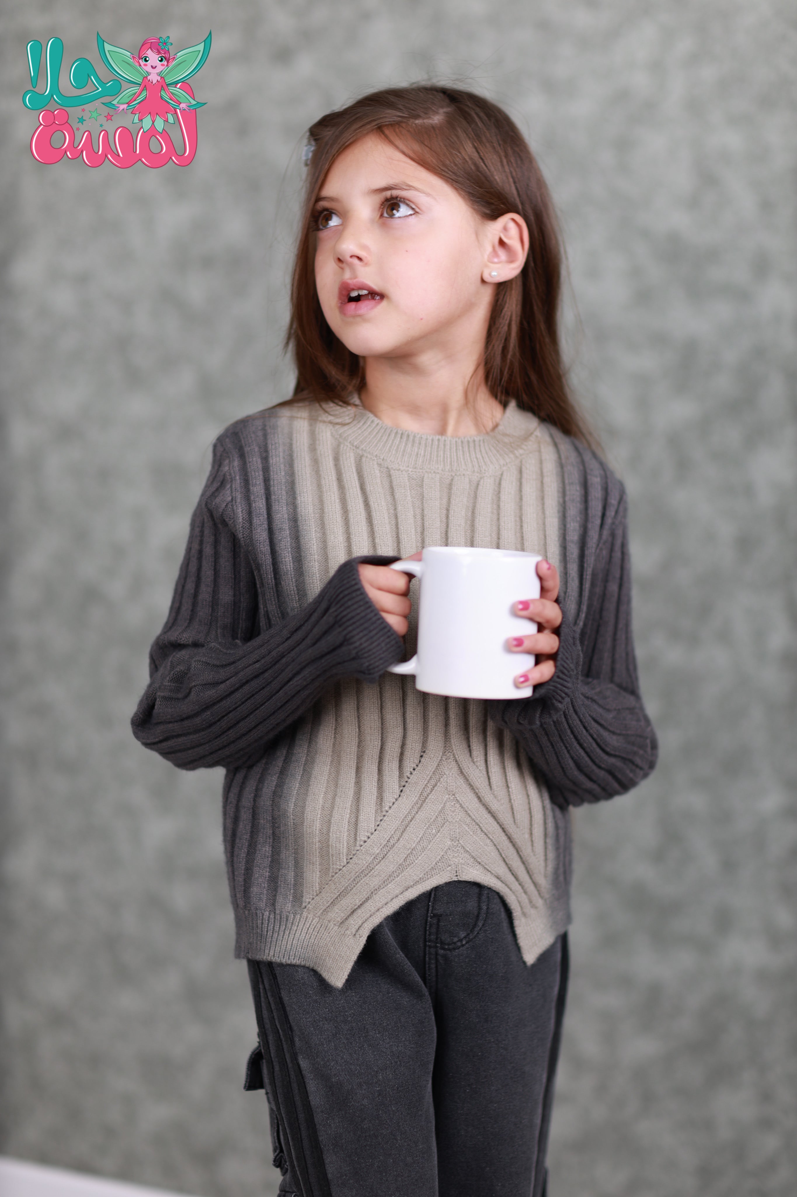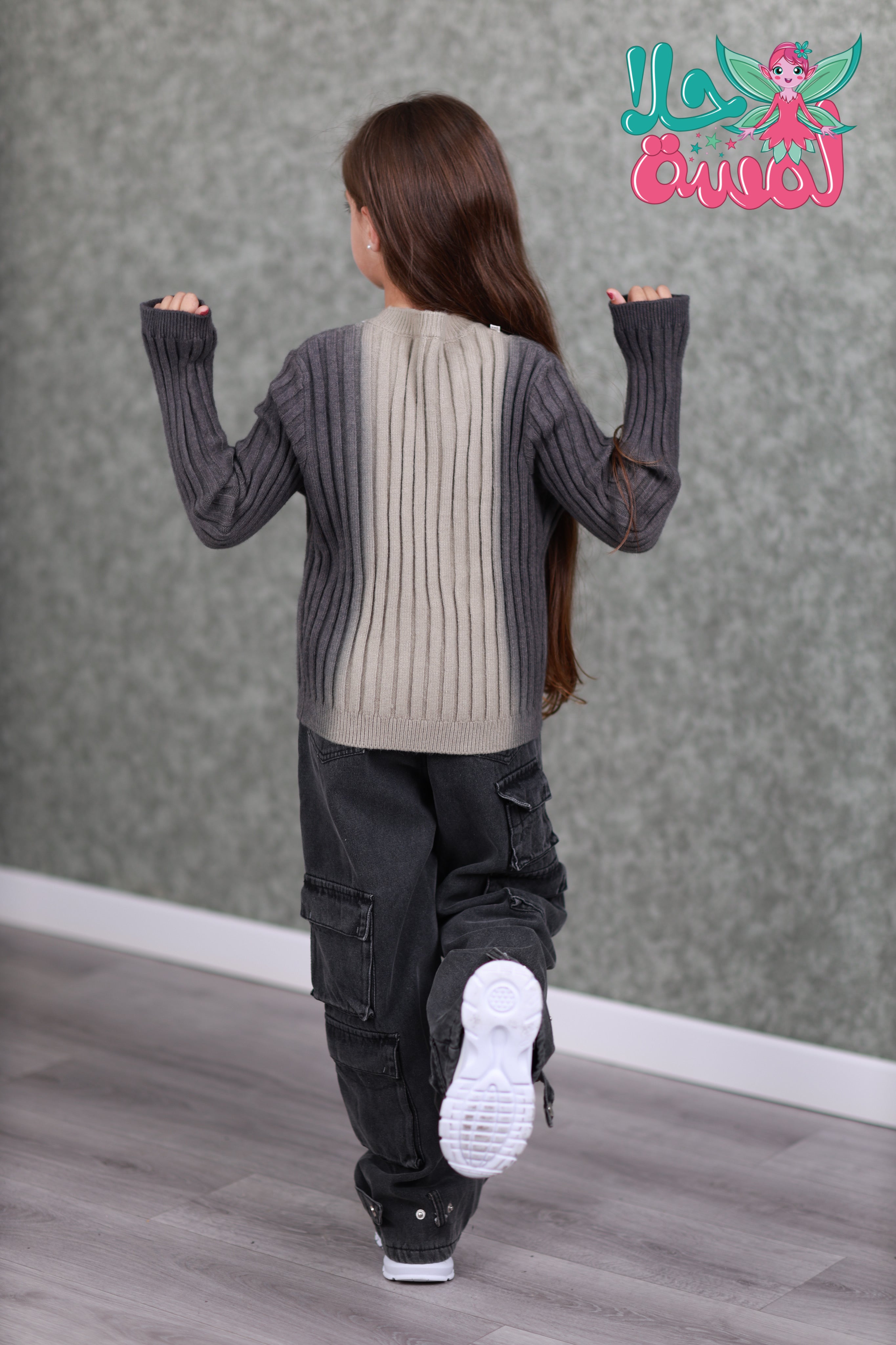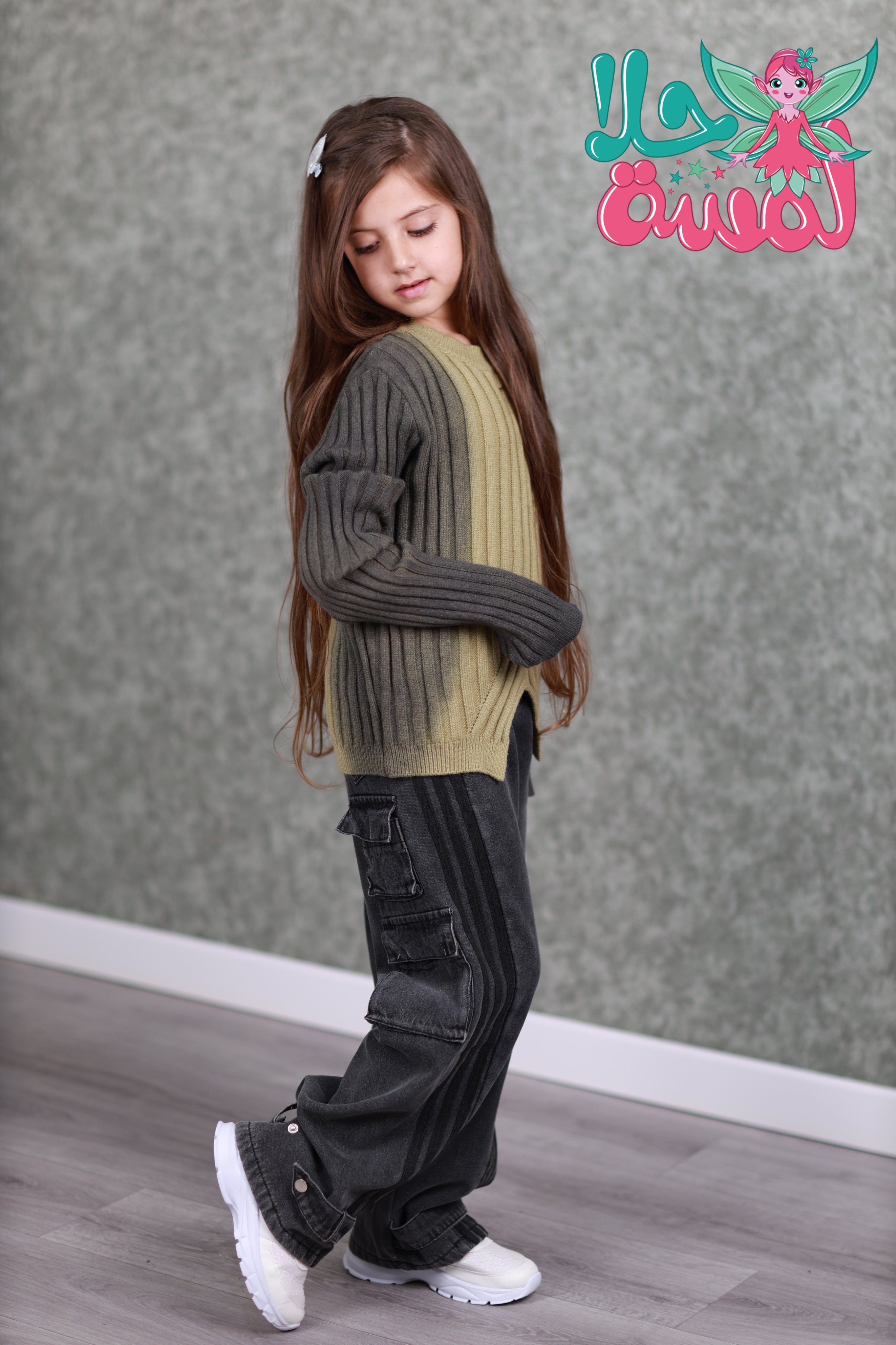 طقم بناتي شتوي قطعتين ( بلوزة صوف + بنطلون جينز مبطن فرو )