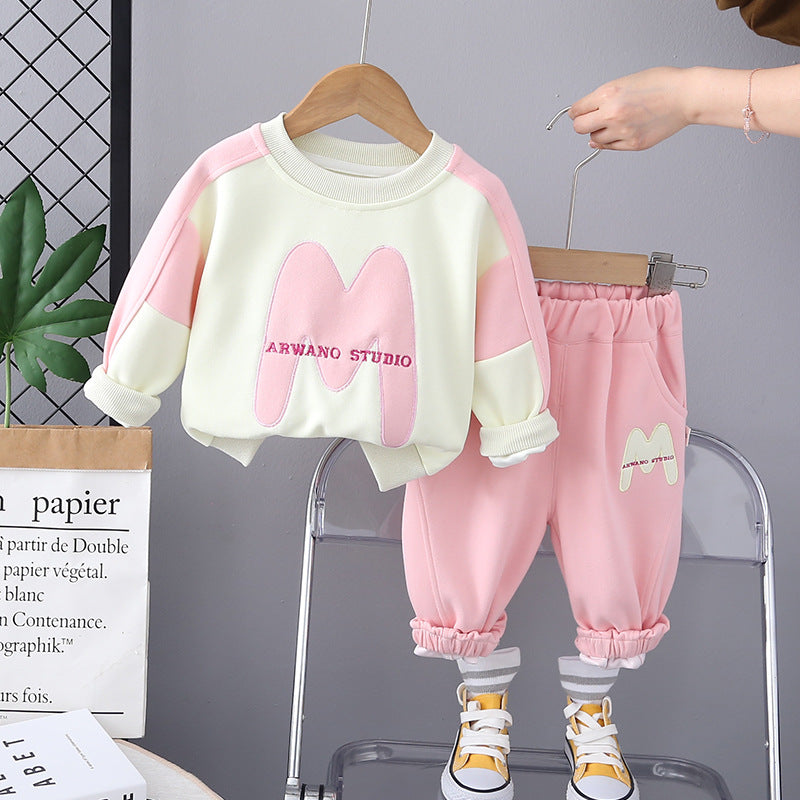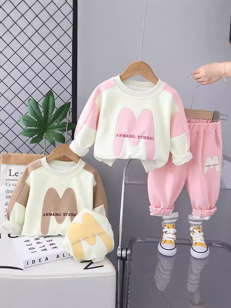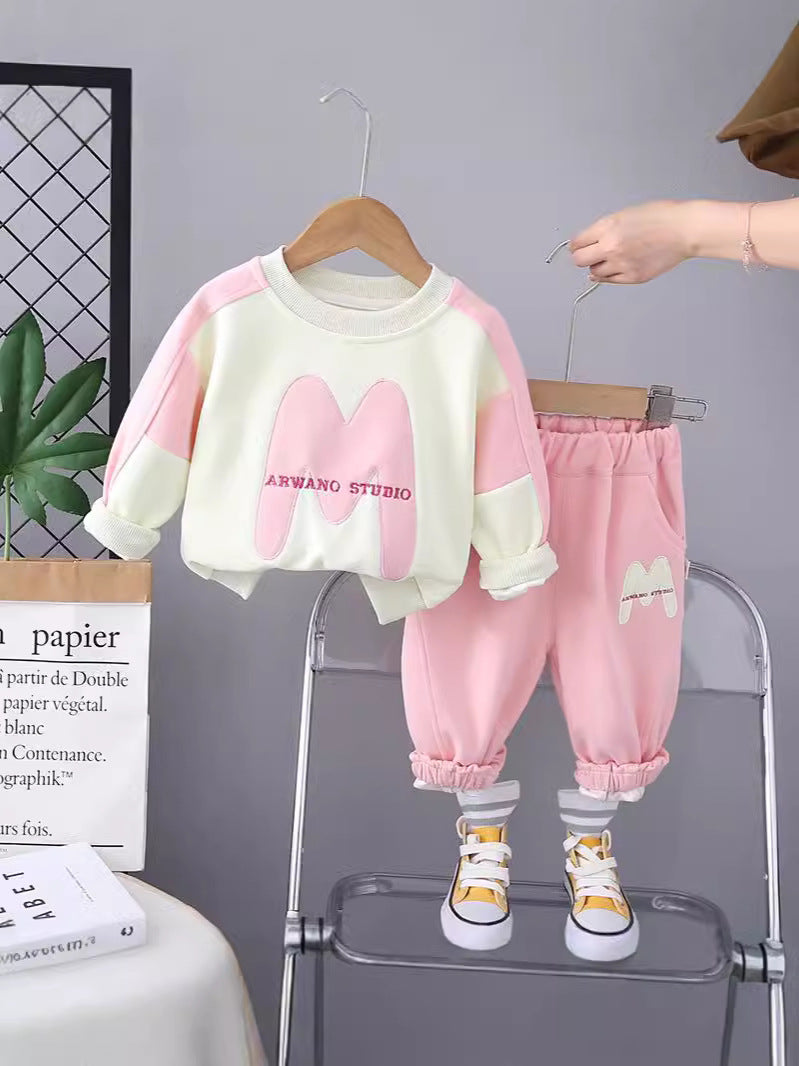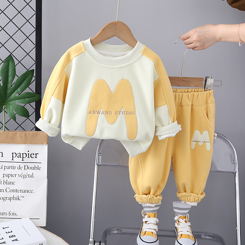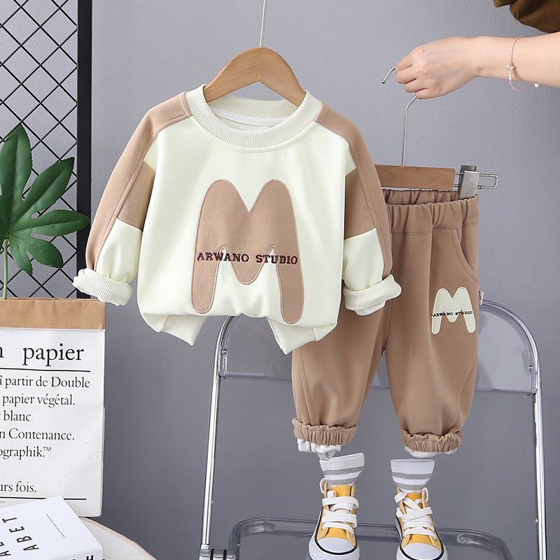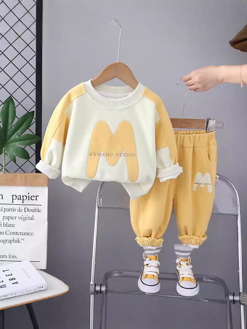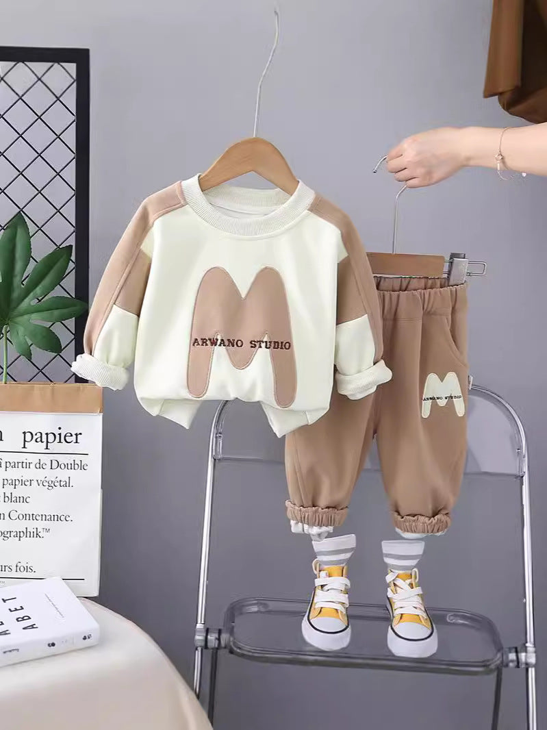 SSN040924-42 طقم ولادي قطن دافي خريفي ربيعي قطعتين (بلوزة + بنطلون )
