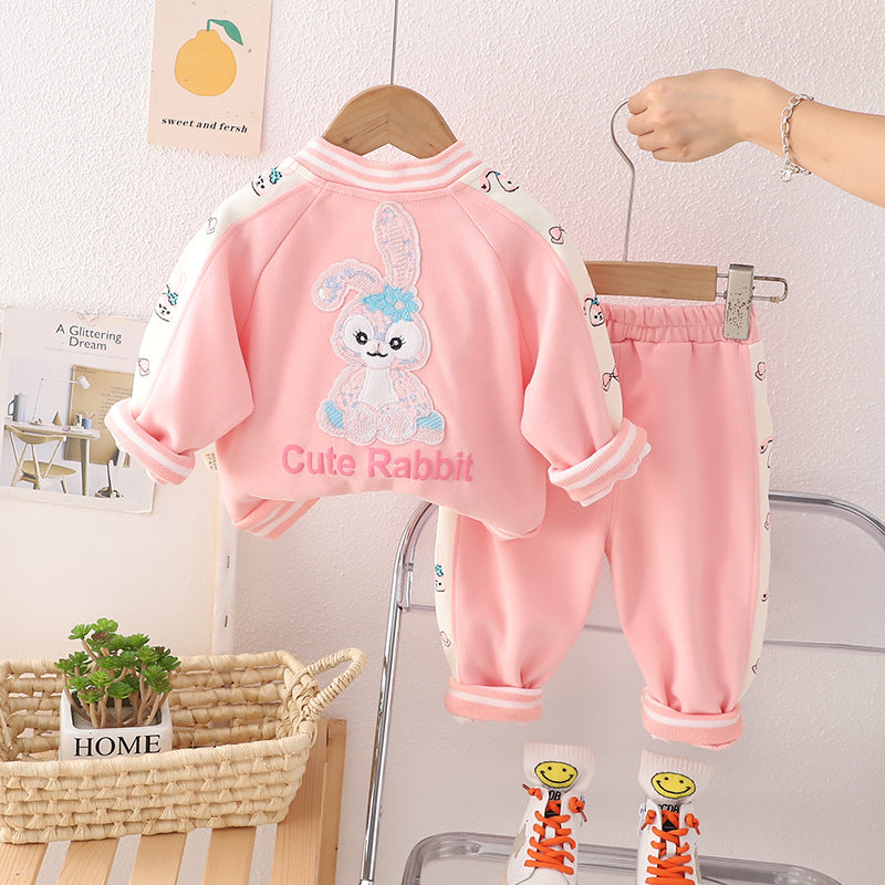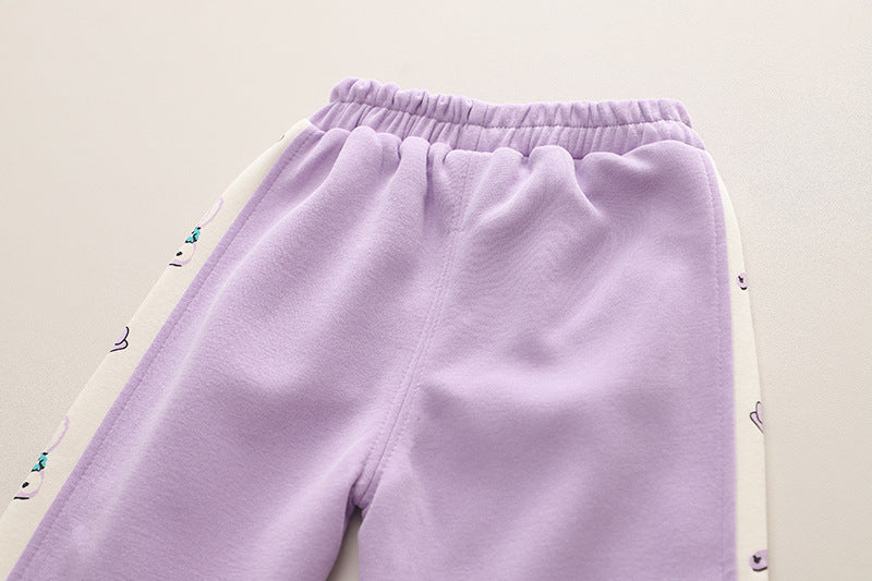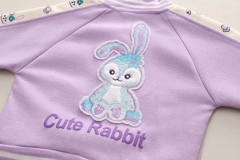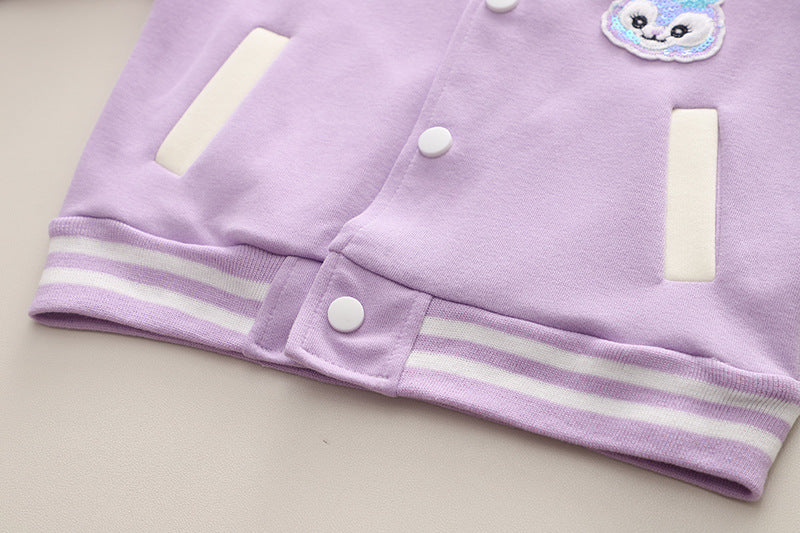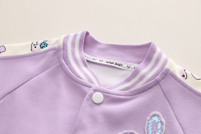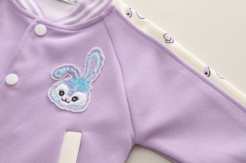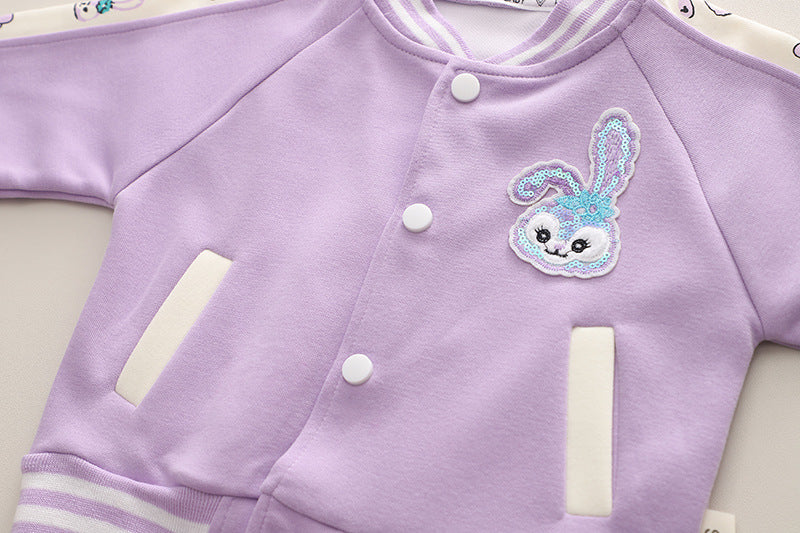 SSN040924-7 طقم بناتي قطن دافي خريفي ربيعي 3 قطع ( جكيت + بنطلون + حقيبة )