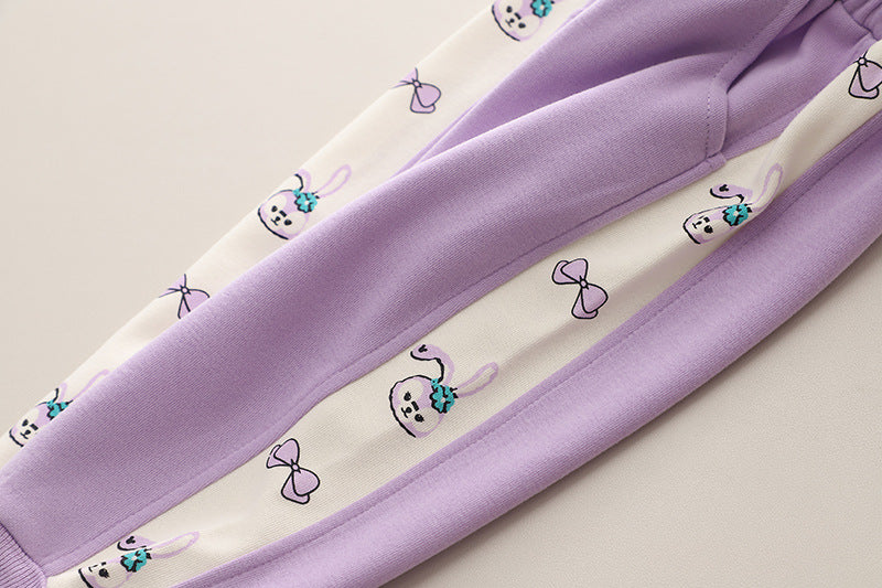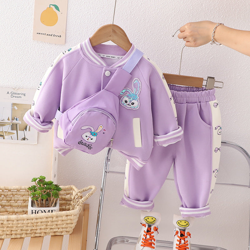 طقم بناتي قطن دافي خريفي ربيعي 3 قطع ( جكيت + بنطلون + حقيبة )