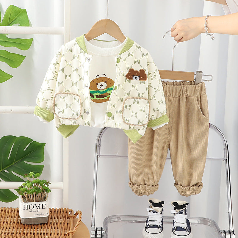 SSX220824-152 طقم ولادي قطني 3 قطع ( بلوزة+ جكيت + بنطلون ) ربيعي خريفي