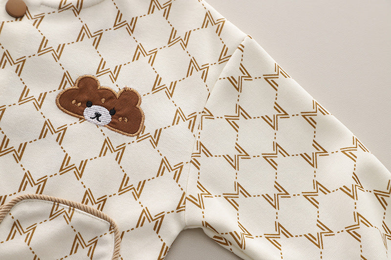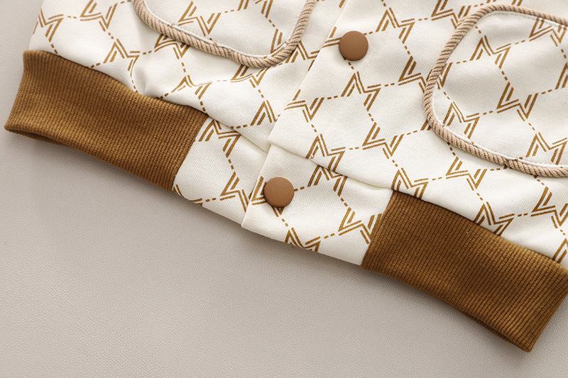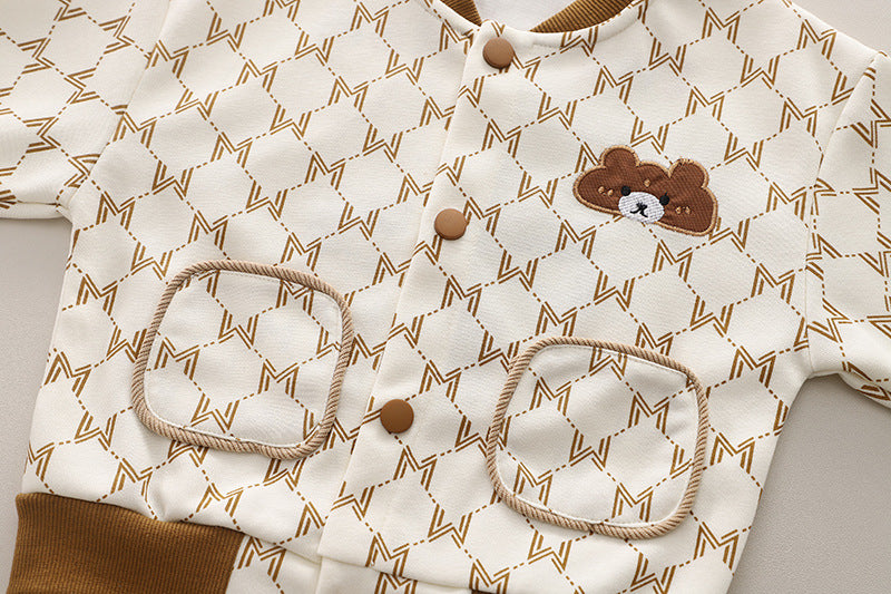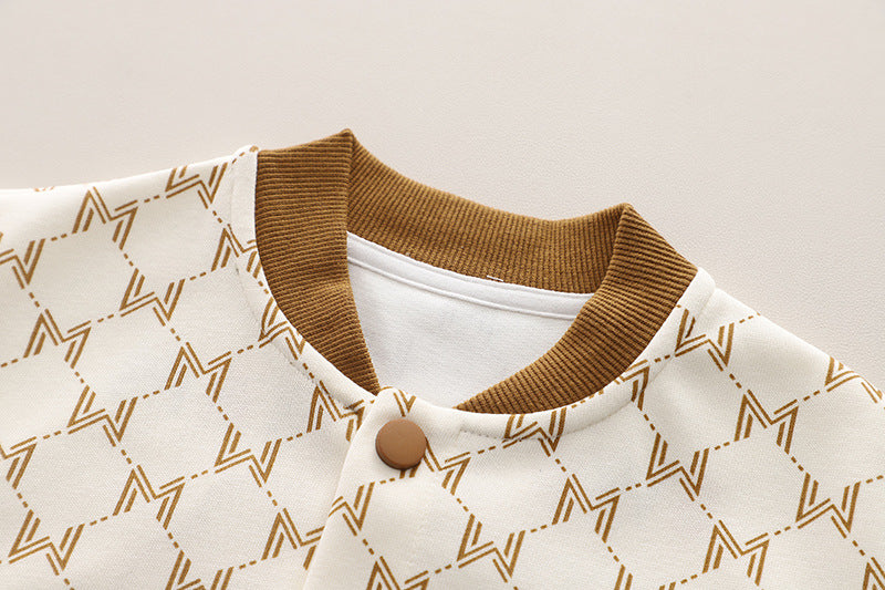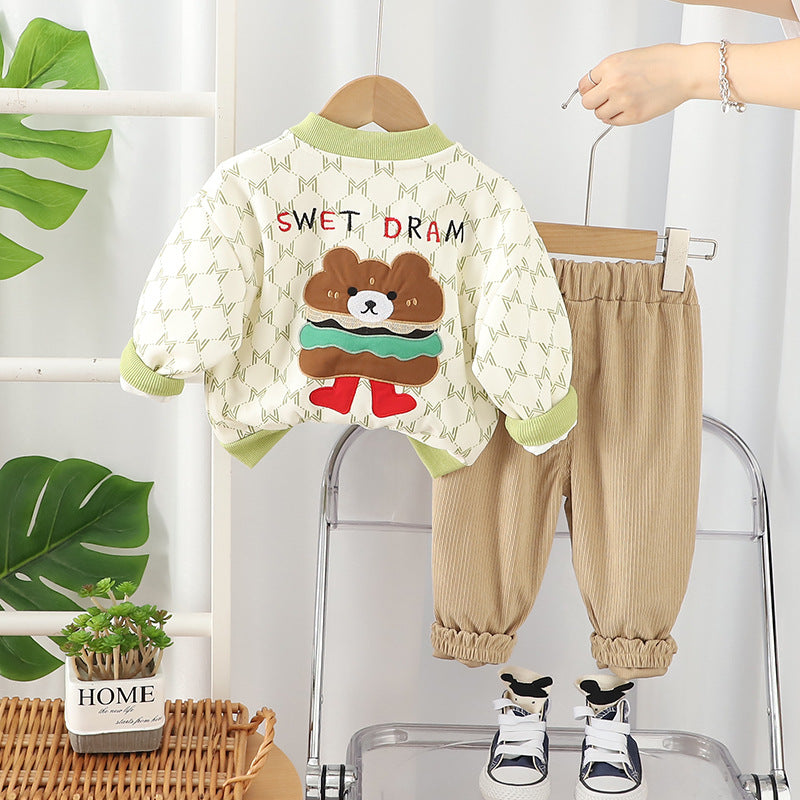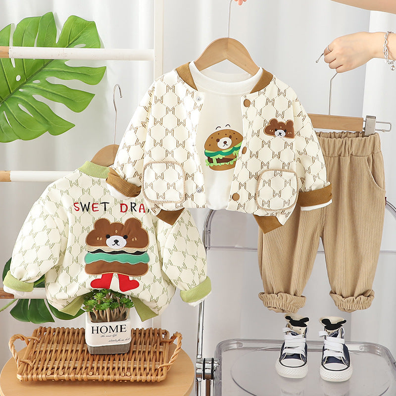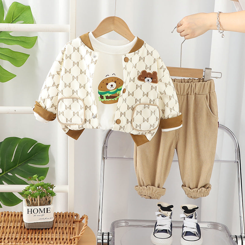 طقم ولادي قطني 3 قطع ( بلوزة+ جكيت + بنطلون ) ربيعي خريفي