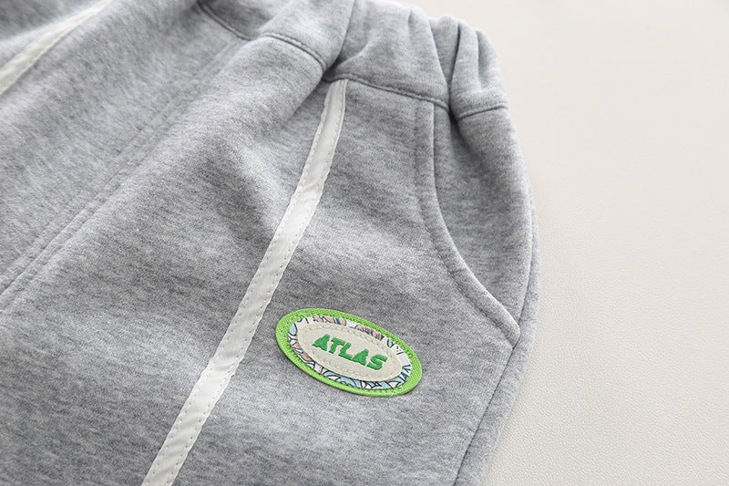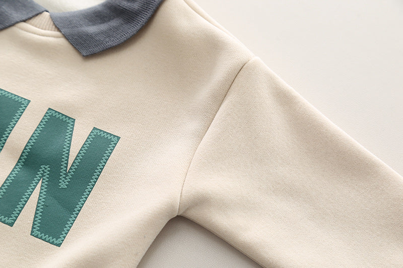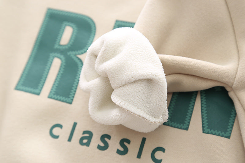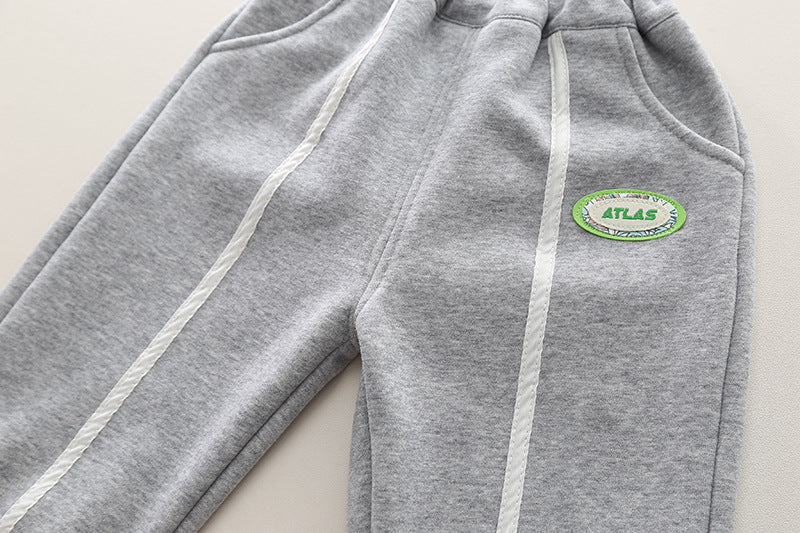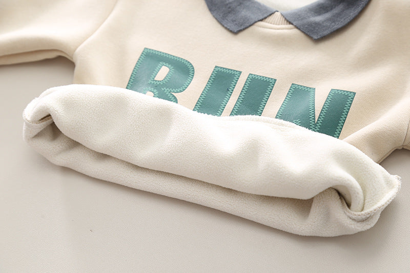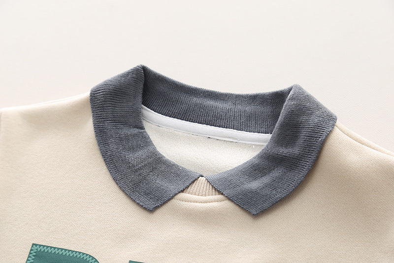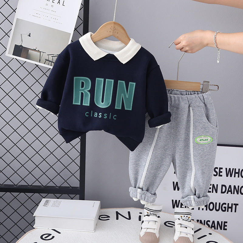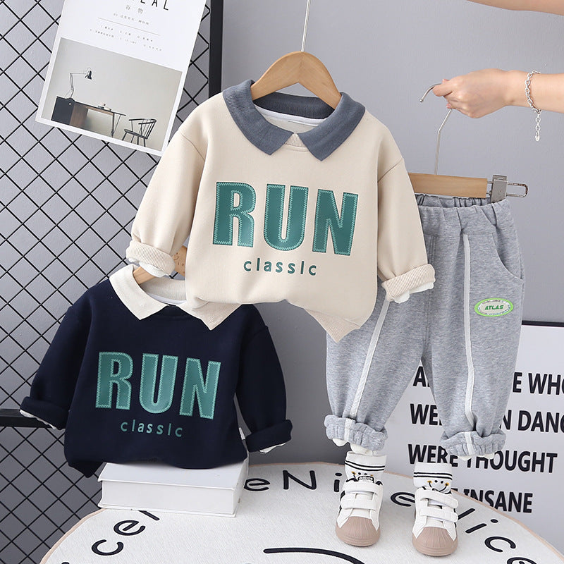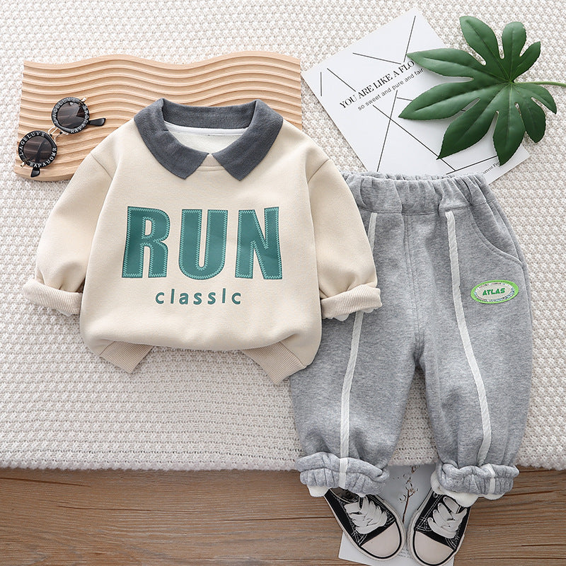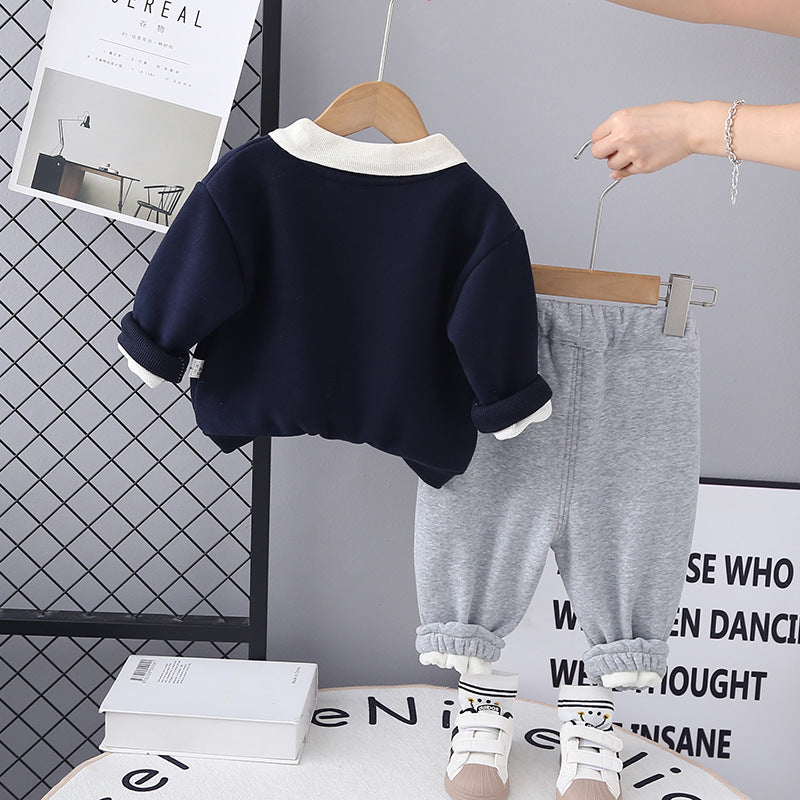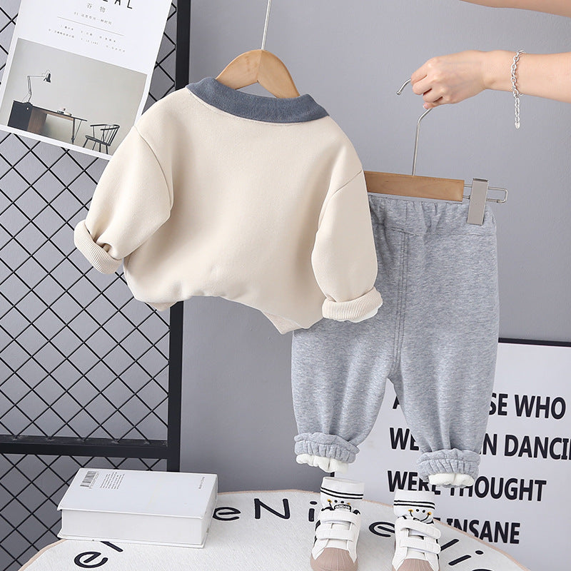 SSX220824-19 طقم ولادي شتوي تقيل مبطن فرو بالكامل قطعتين ( بلوزة + بنطلون)