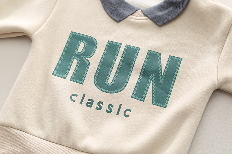 طقم ولادي شتوي تقيل مبطن فرو بالكامل قطعتين ( بلوزة + بنطلون)
