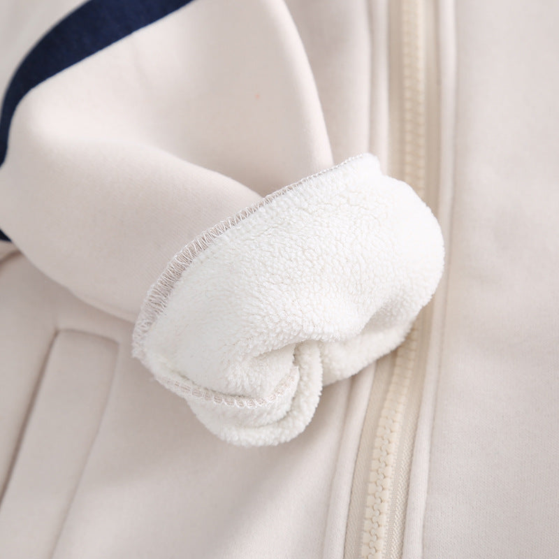 طقم ولادي شتوي تقيل مبطن فرو بالكامل قطعتين ( بلوزة + بنطلون)