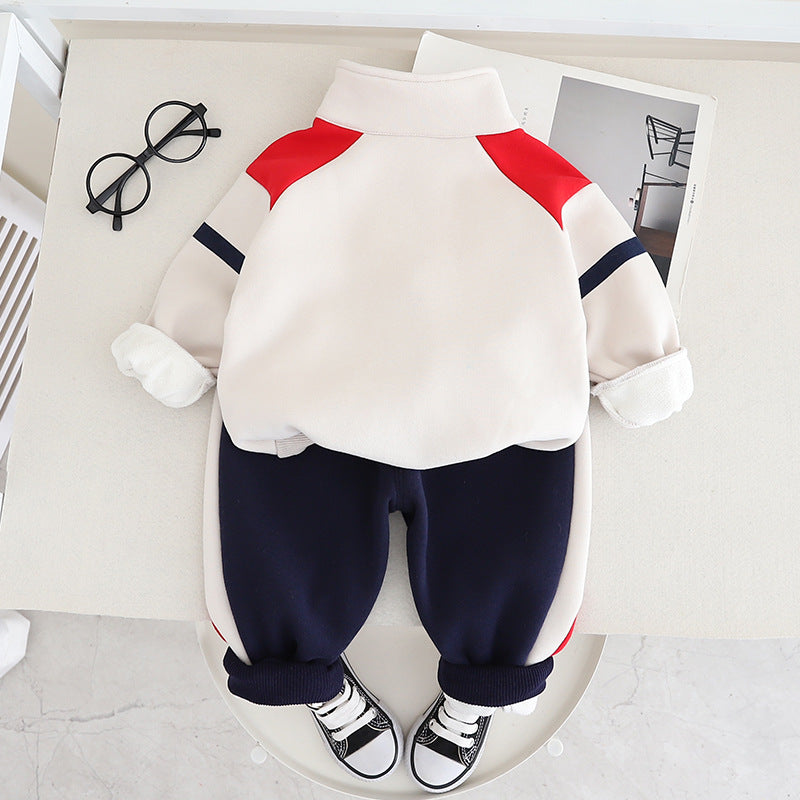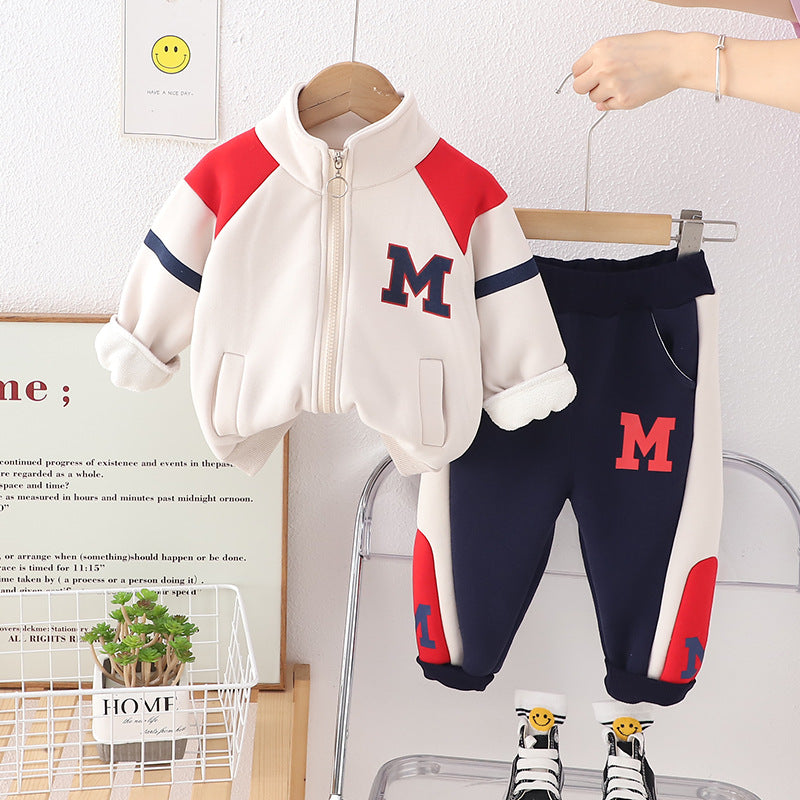 SSX220824-27 طقم ولادي شتوي تقيل مبطن فرو بالكامل قطعتين ( بلوزة + بنطلون)