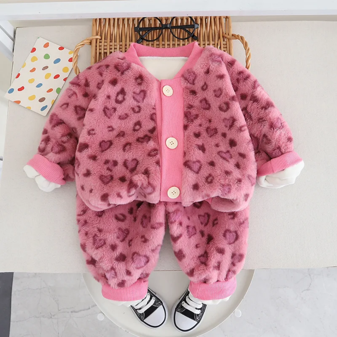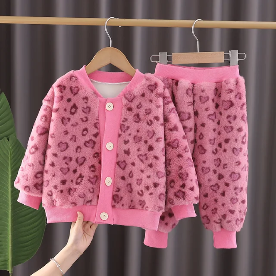 طقم شتوي تقيل مبطن فرو بالكامل قطعتين ( جكيت + بنطلون)