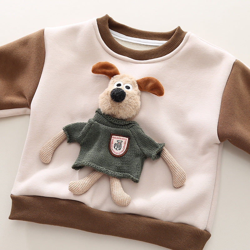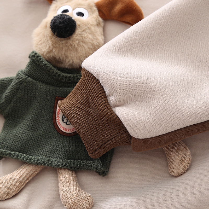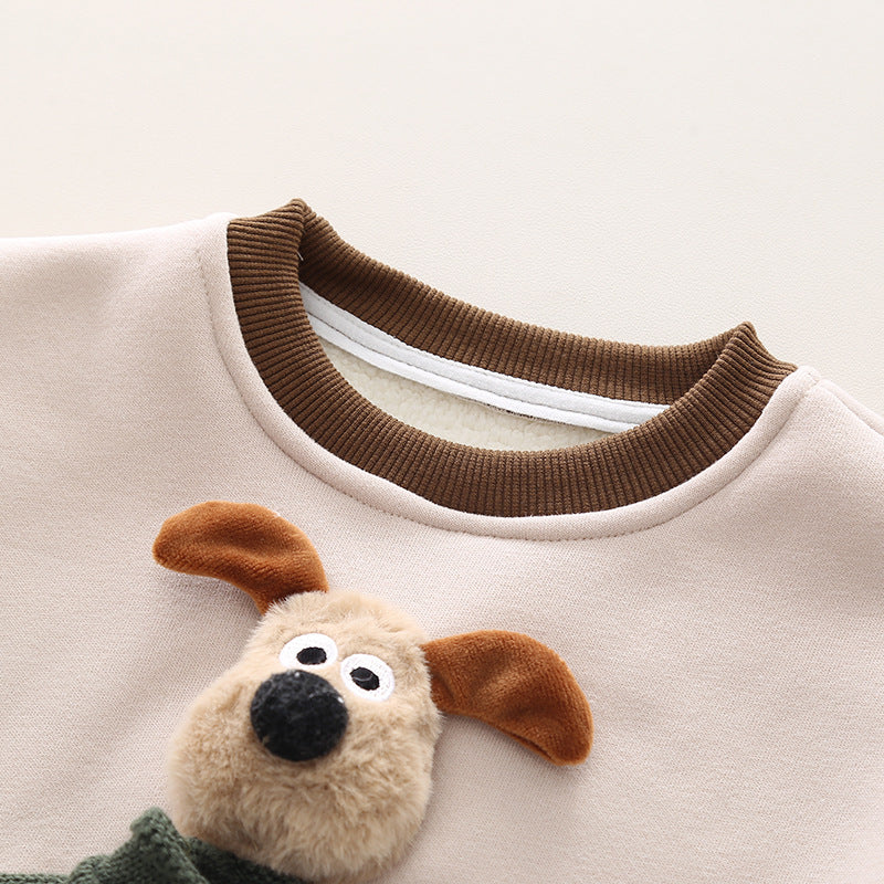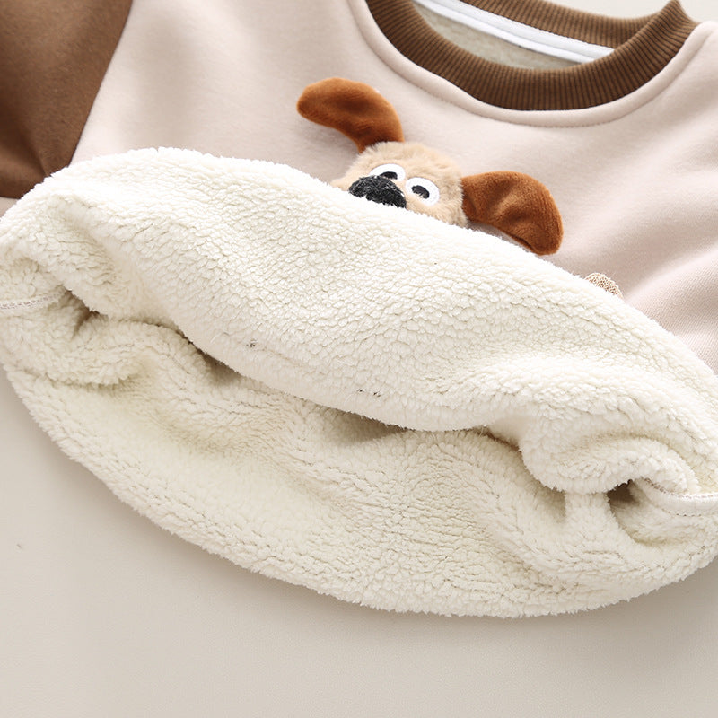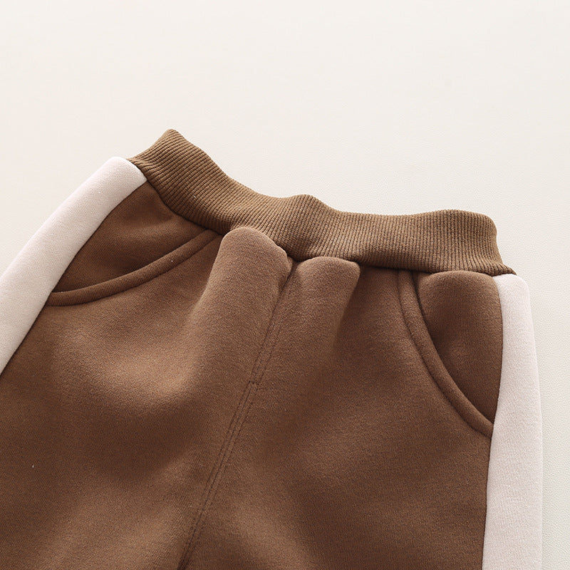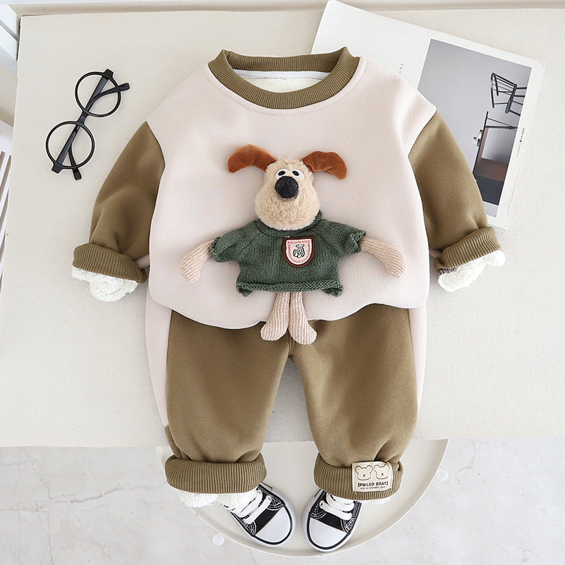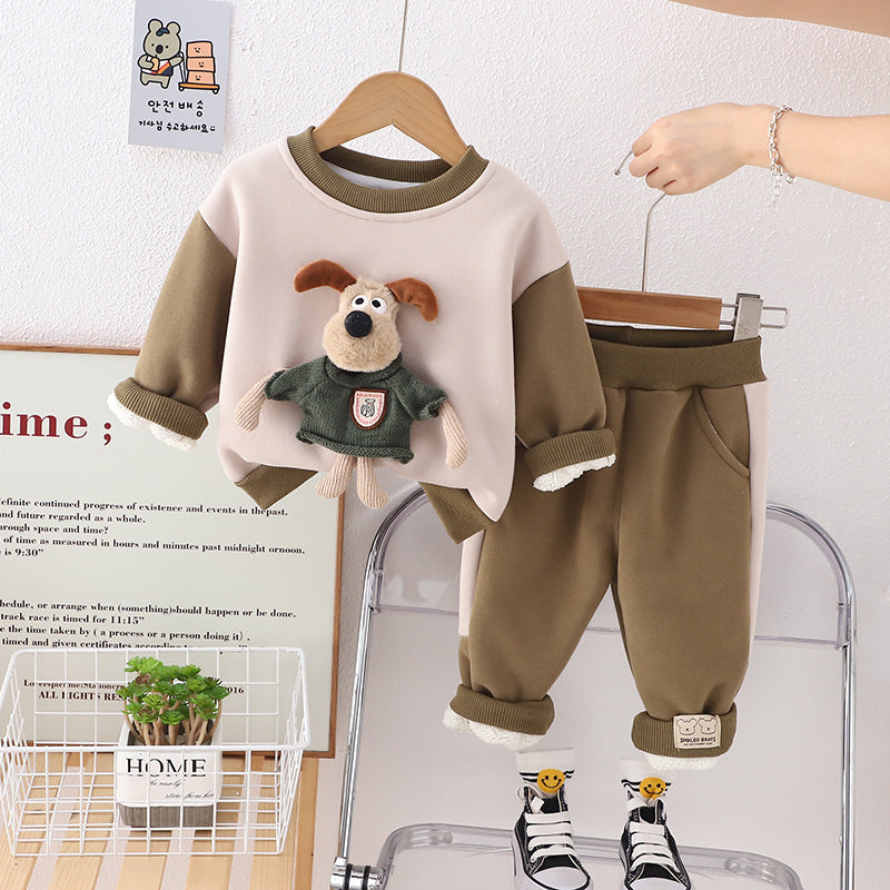 SSX220824-53 طقم ولادي شتوي تقيل مبطن فرو بالكامل قطعتين ( بلوزة + بنطلون)