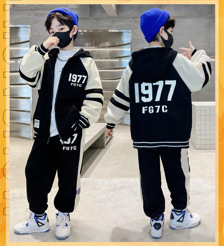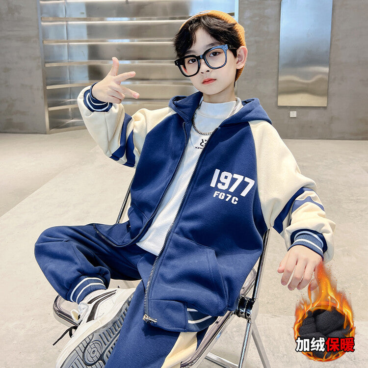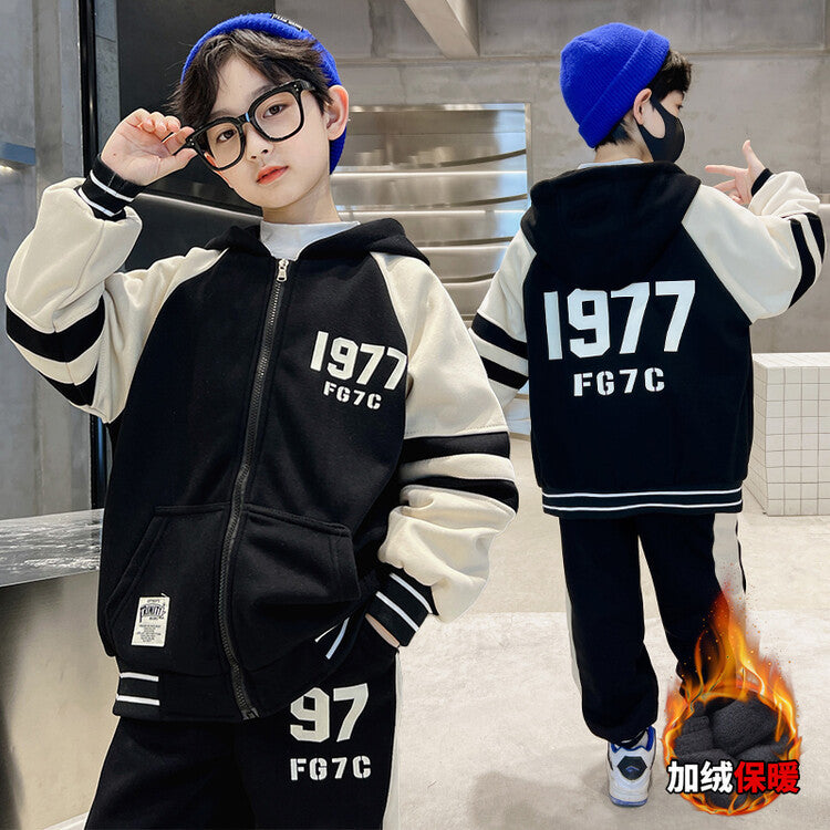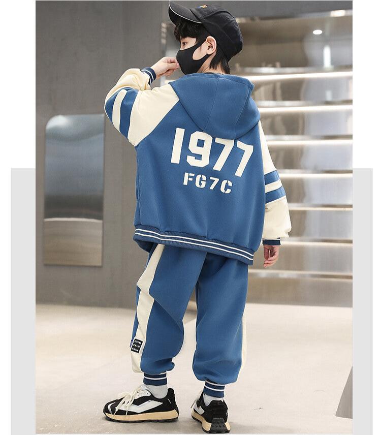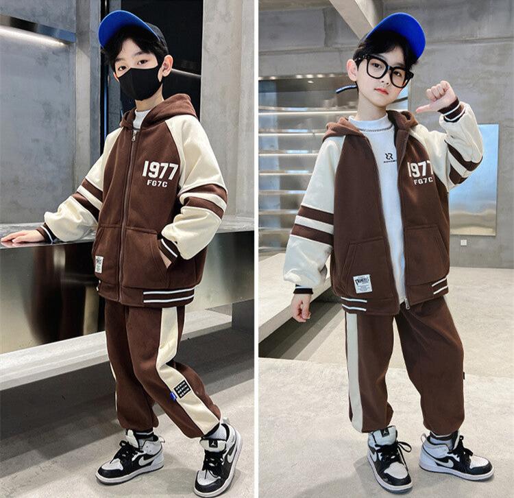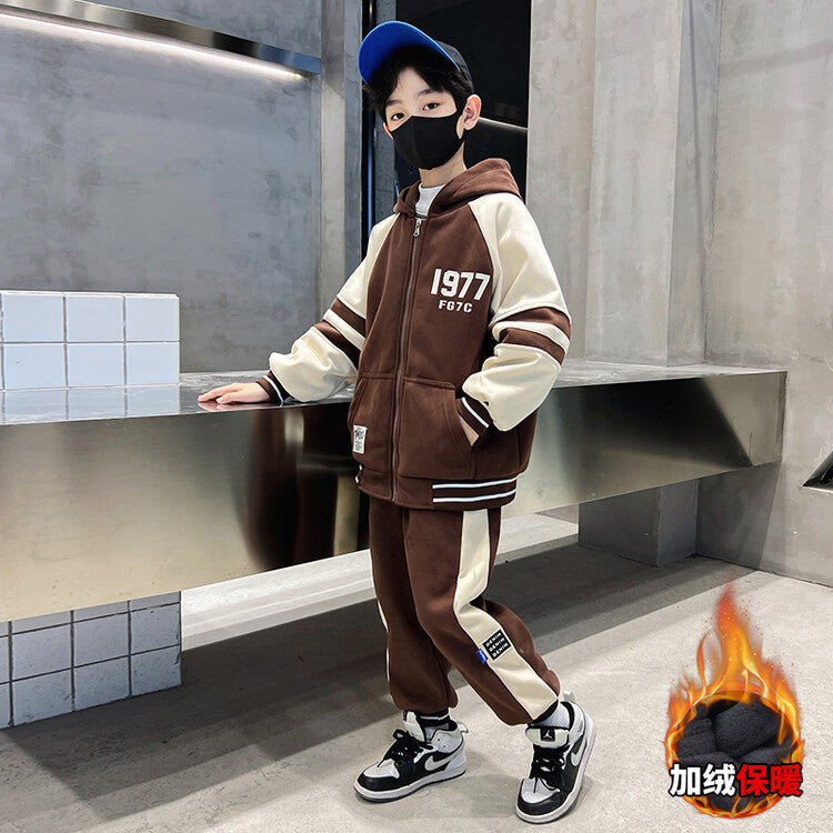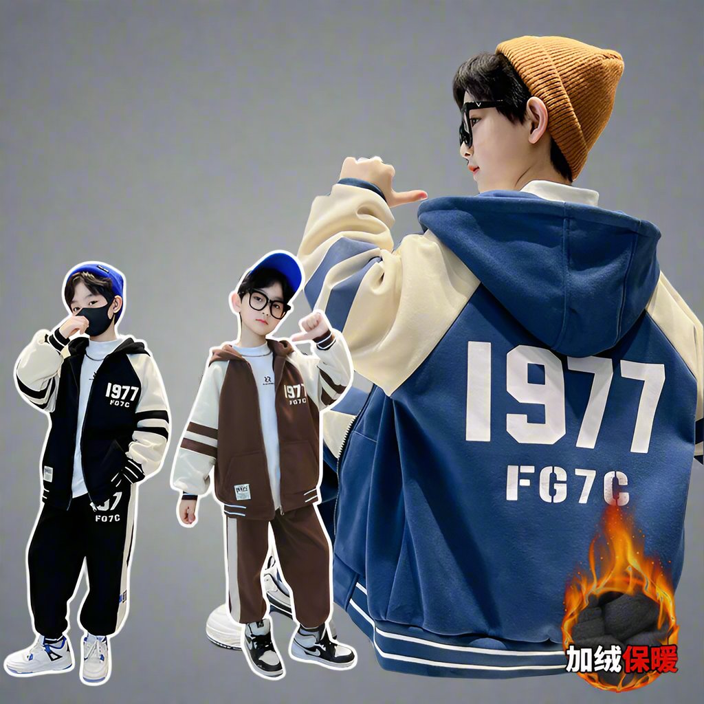 طقم سبورت ولادي مبطن فرو بالكامل قطعتين ( جكيت + بنطلون)