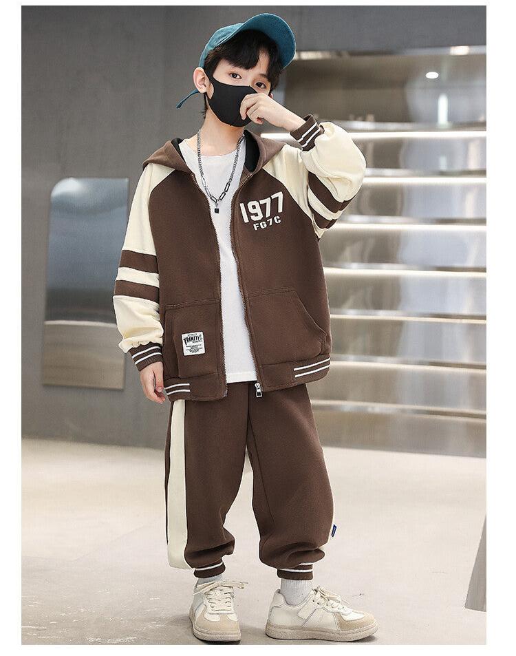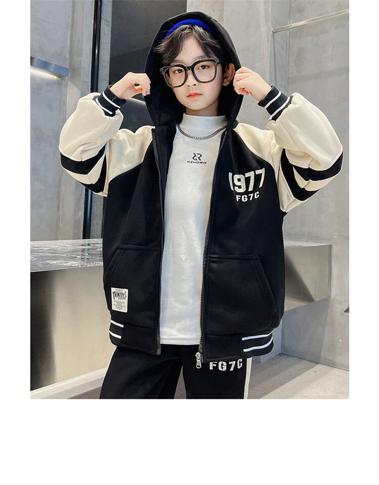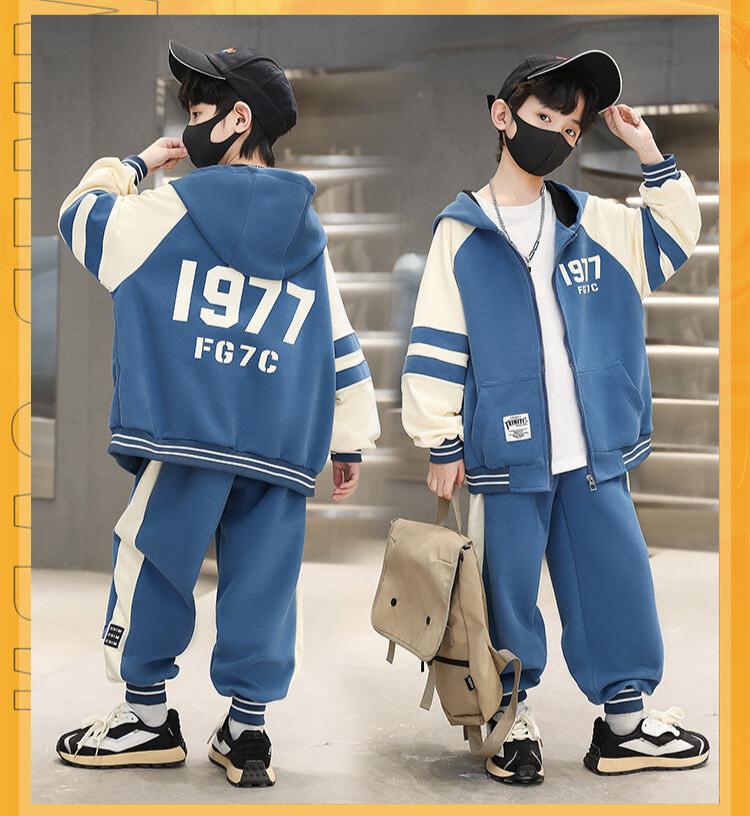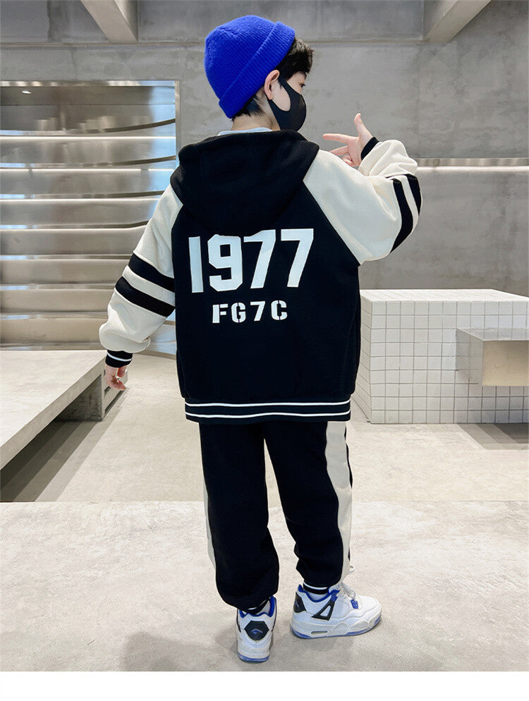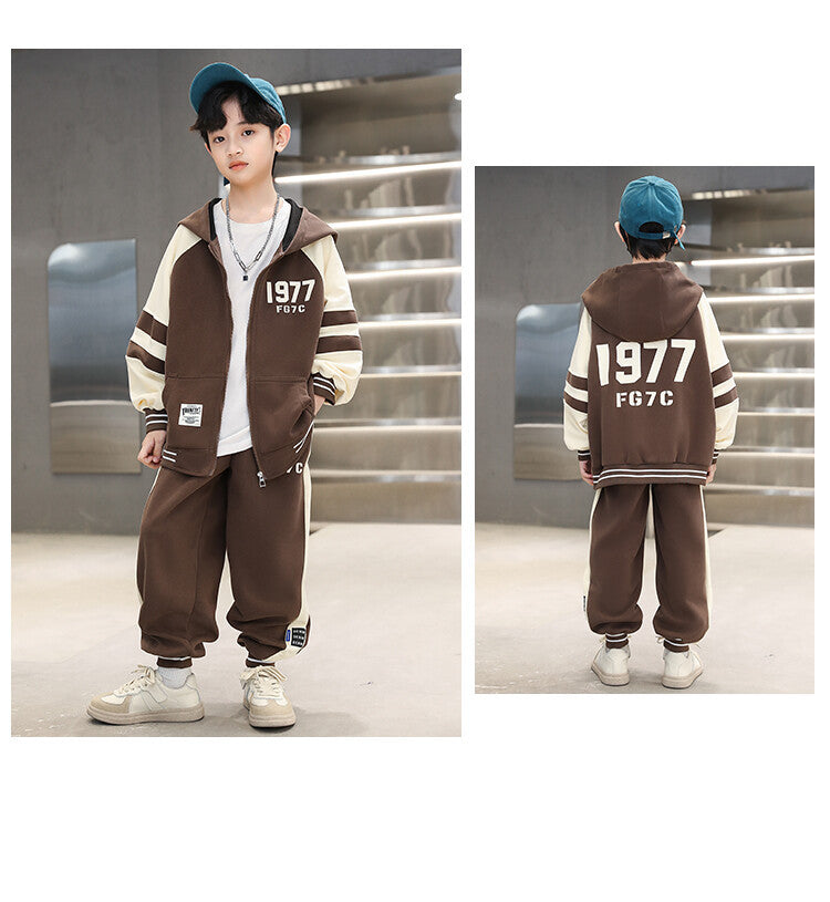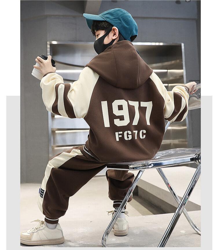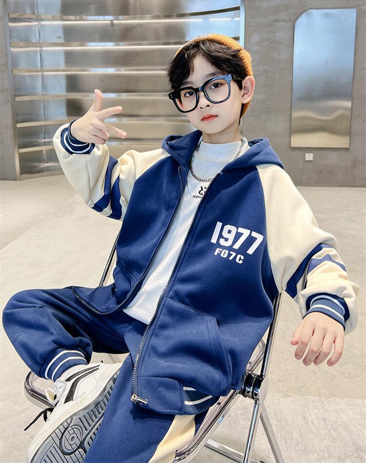 طقم سبورت ولادي مبطن فرو بالكامل قطعتين ( جكيت + بنطلون)