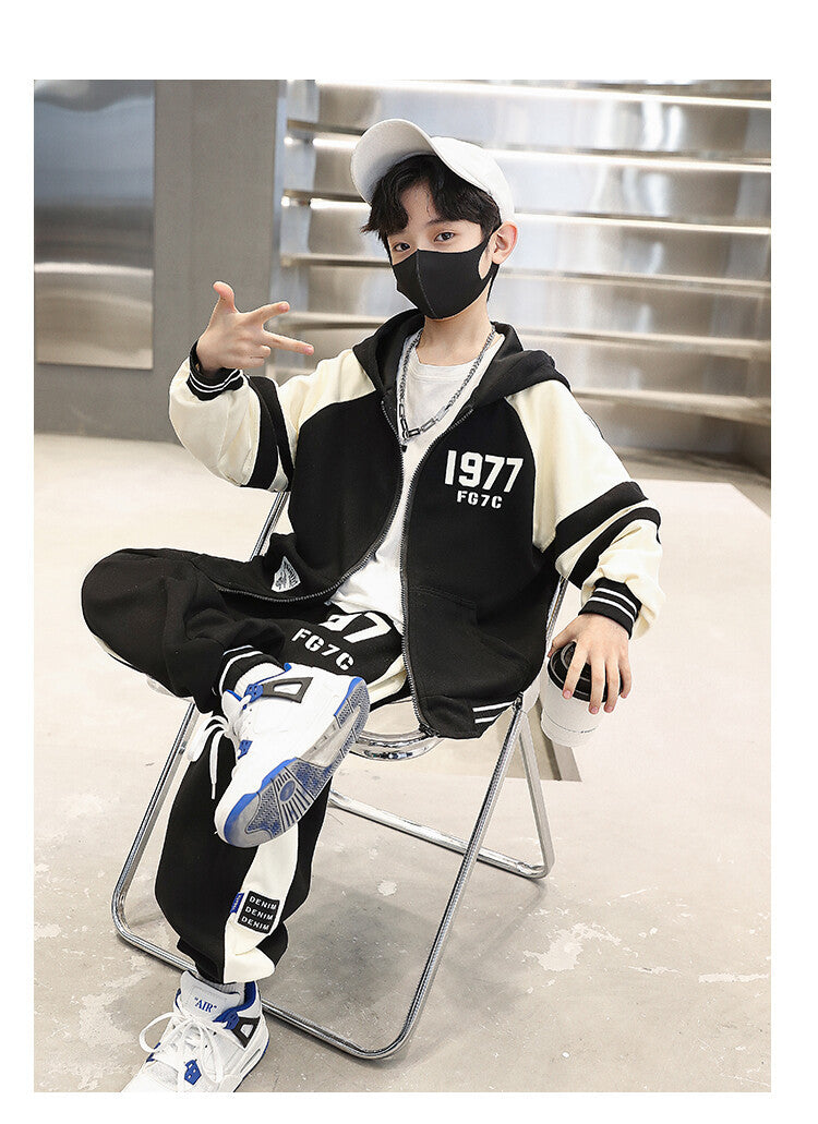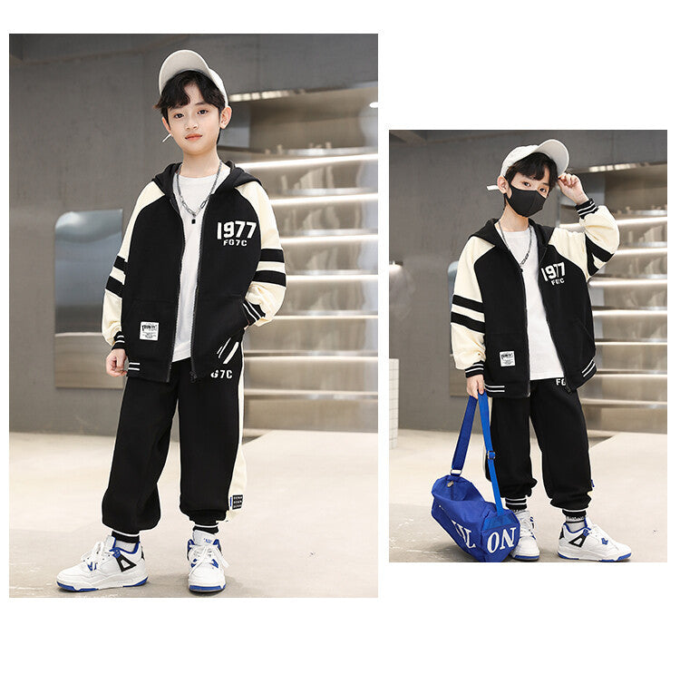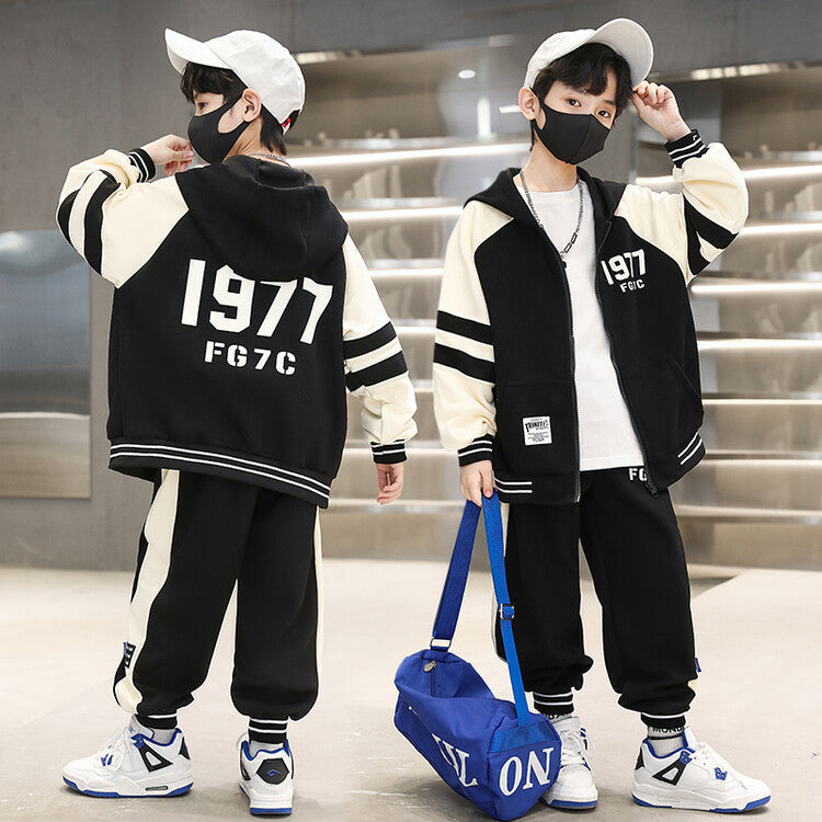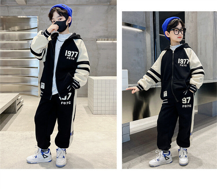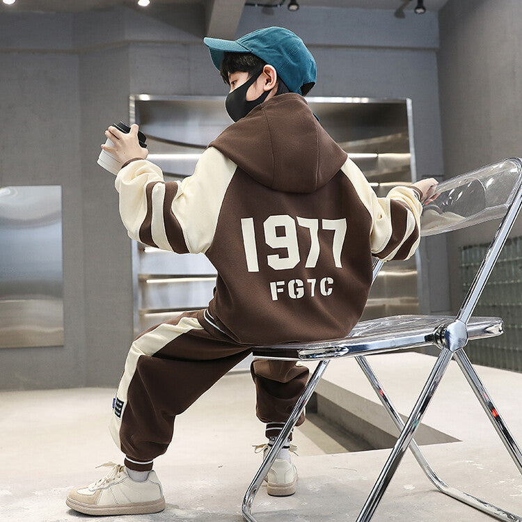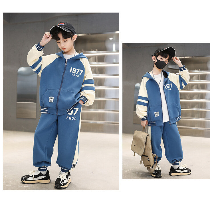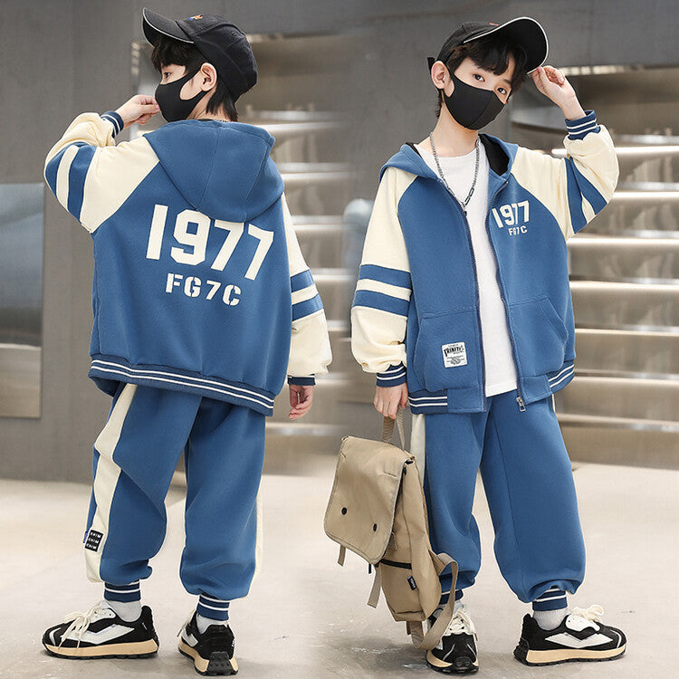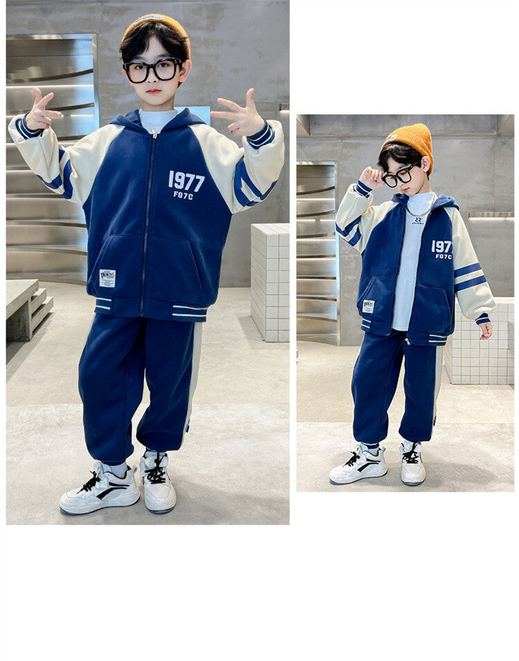 طقم سبورت ولادي مبطن فرو بالكامل قطعتين ( جكيت + بنطلون)