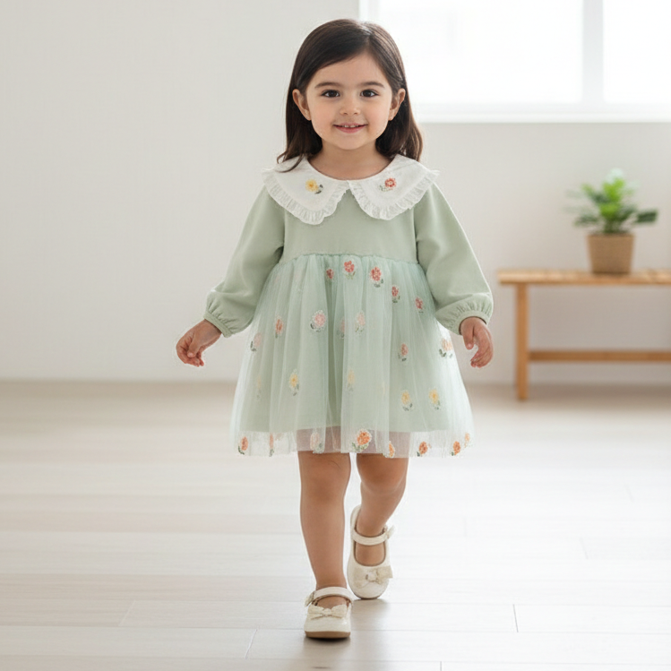 فستان بناتي قطني مطرز