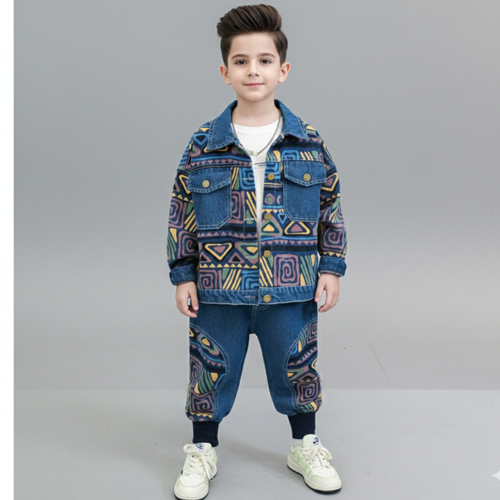 طقم جينز ولادي مميز بجي قطعتين ( جكيت+ بنطلون) RM1227-22