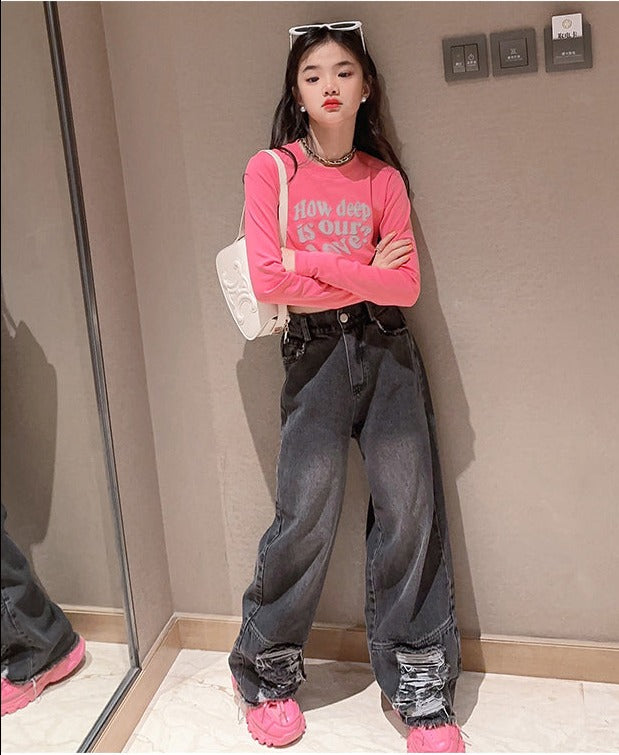RM171223-3 طقم جينز قطعتين ( بلوزة قطنية + بنطلون جينز )