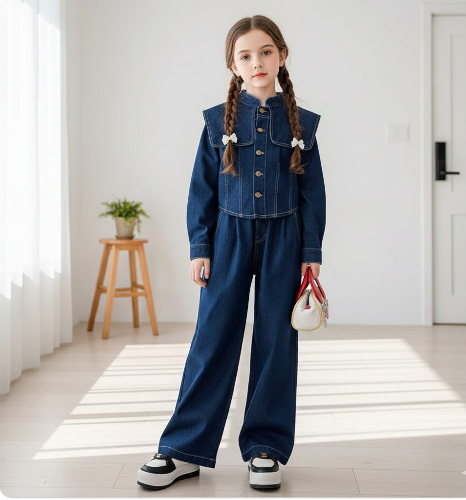 RM171223-6 طقم جينز بناتي قطعتين ( جكيت + بنطلون )