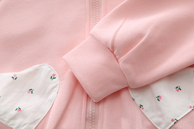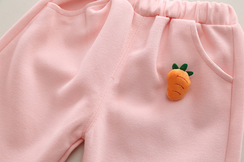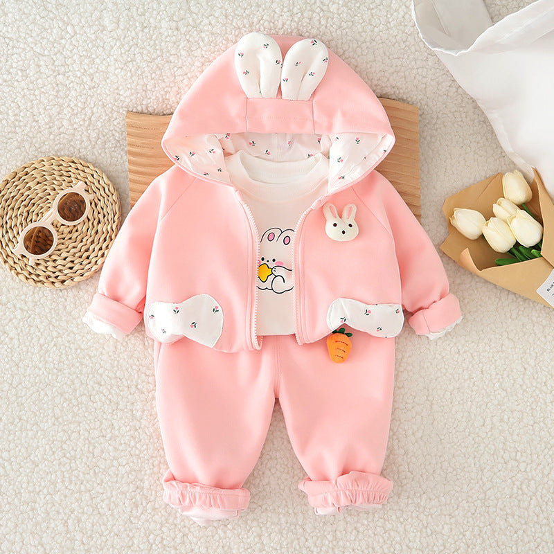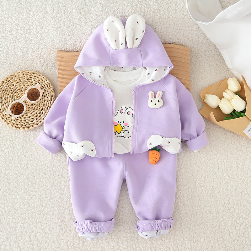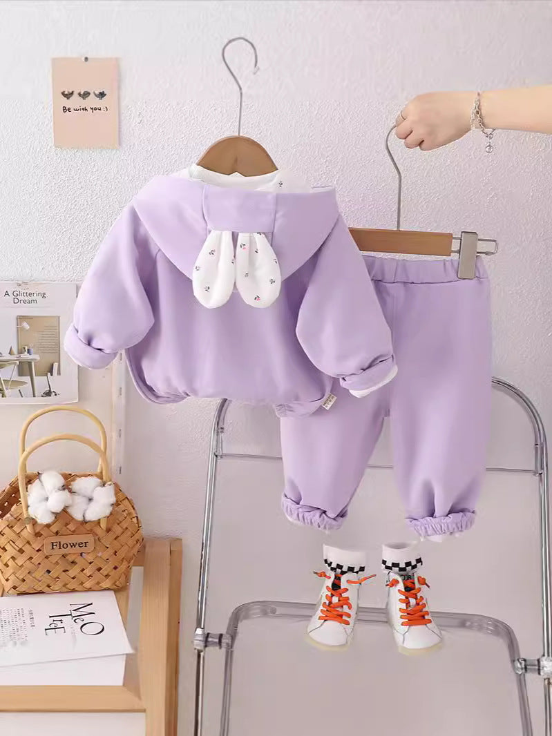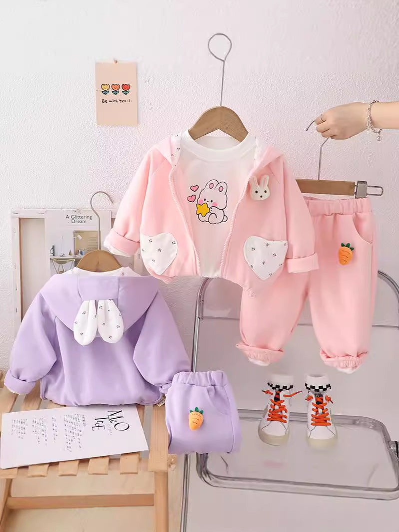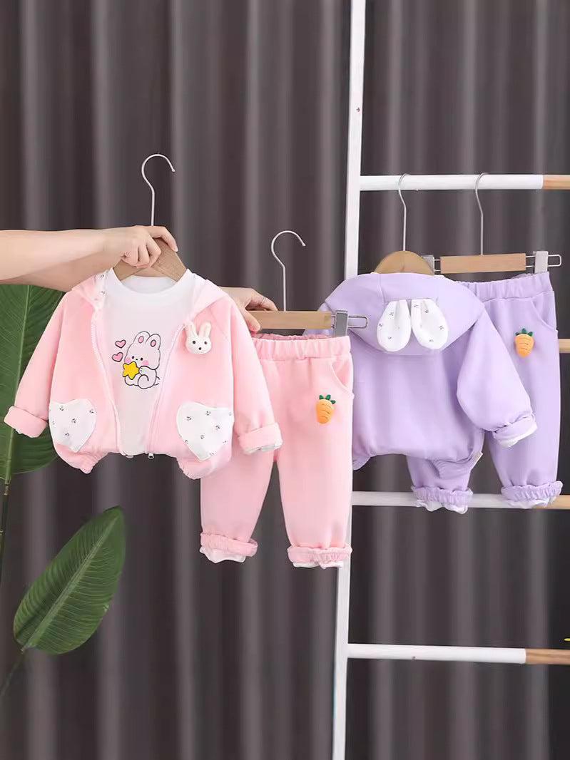 طقم بناتي قطن تقيل خريفي ربيعي 3 قطع ( جكيت + بلوزة+ بنطلون)