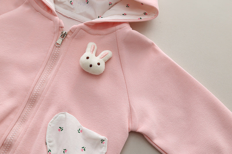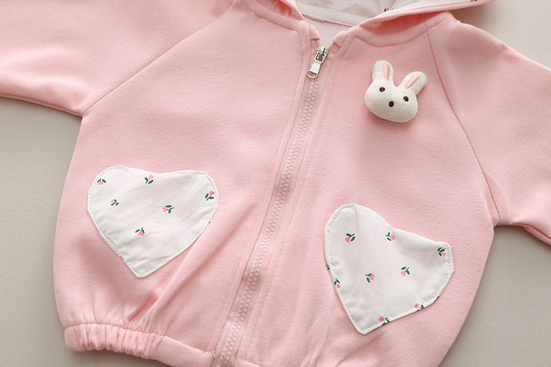 SSN040924-58 طقم بناتي قطن تقيل خريفي ربيعي 3 قطع ( جكيت + بلوزة+ بنطلون)