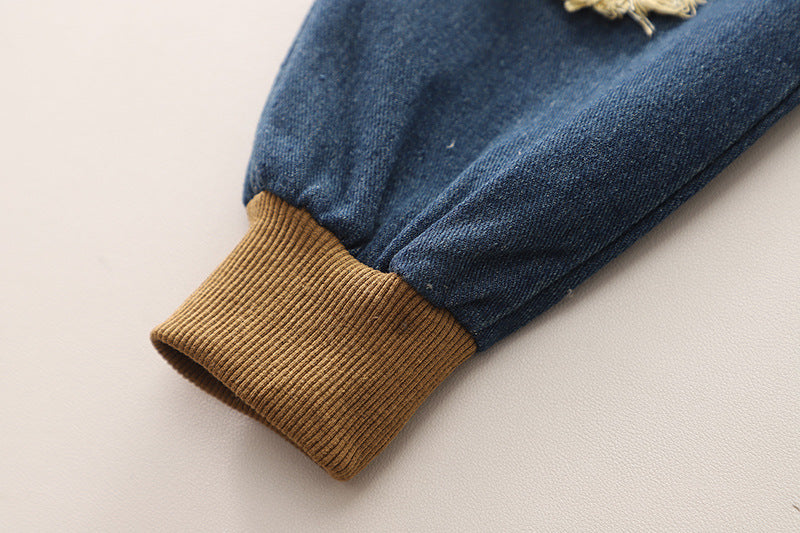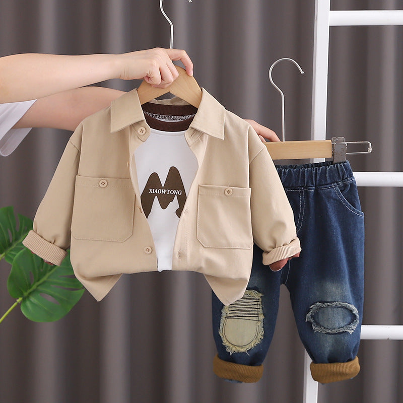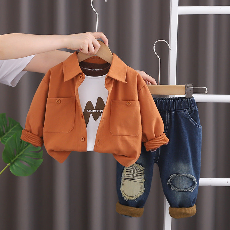 طقم جينز 3 قطع ( بلوزة قطنية + جكيت + بنطلون جينز )