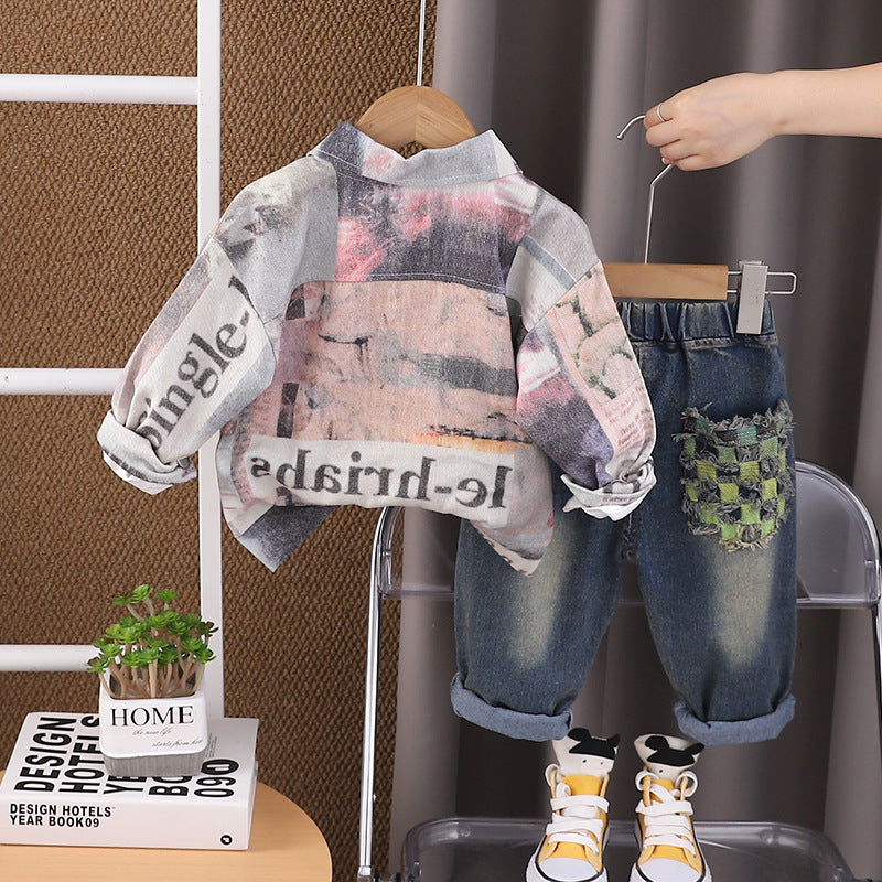 SSX220824-159 طقم 3 قطع ( بلوزة + جكيت + بنطلون جينز ) خريفي ربيعي