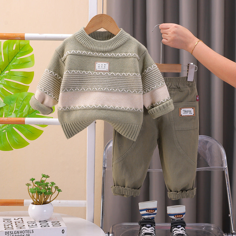 طقم قطعتين ( بلوزة صوف تقيل + بنطلون )