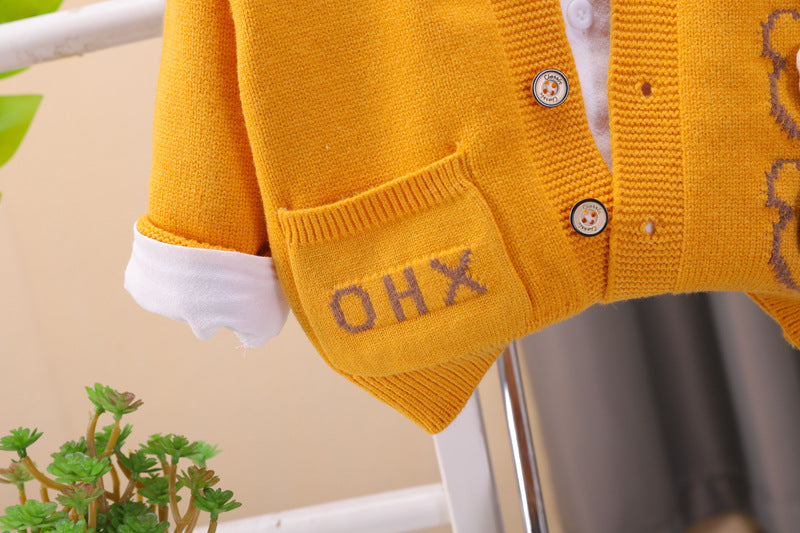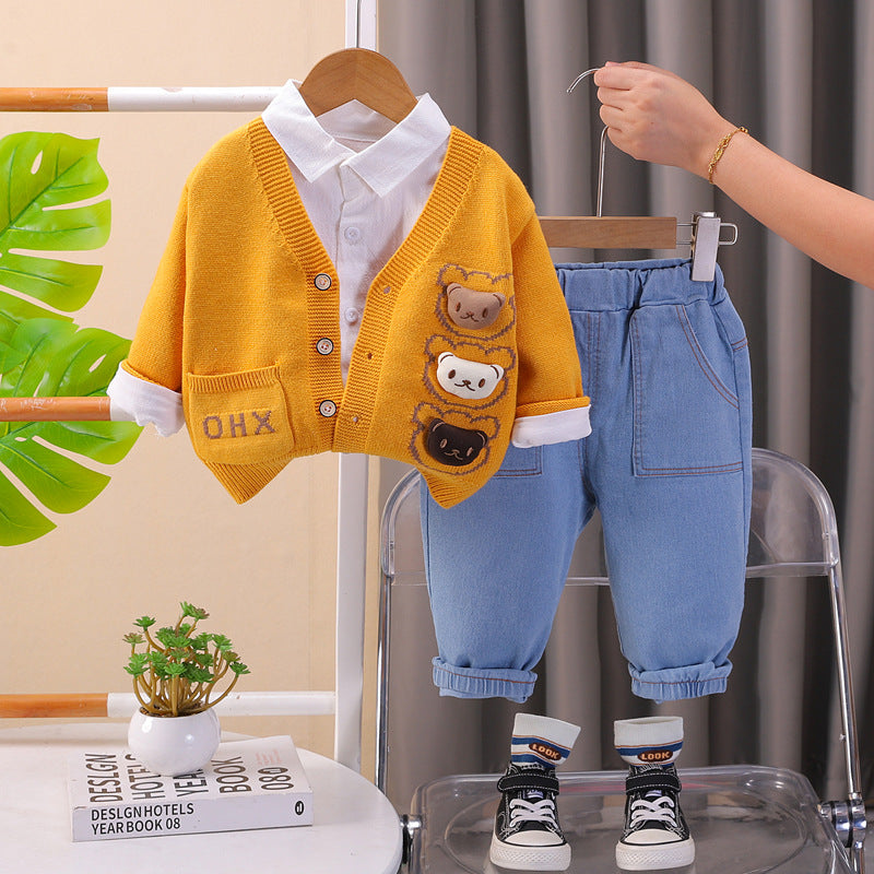 طقم ولادي 3 قطع دبدوب ( قميص + جكيت صوف + بنطلون جينز )