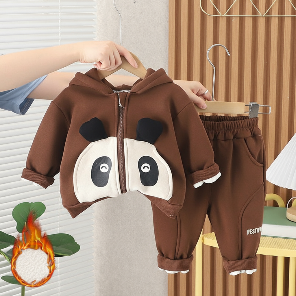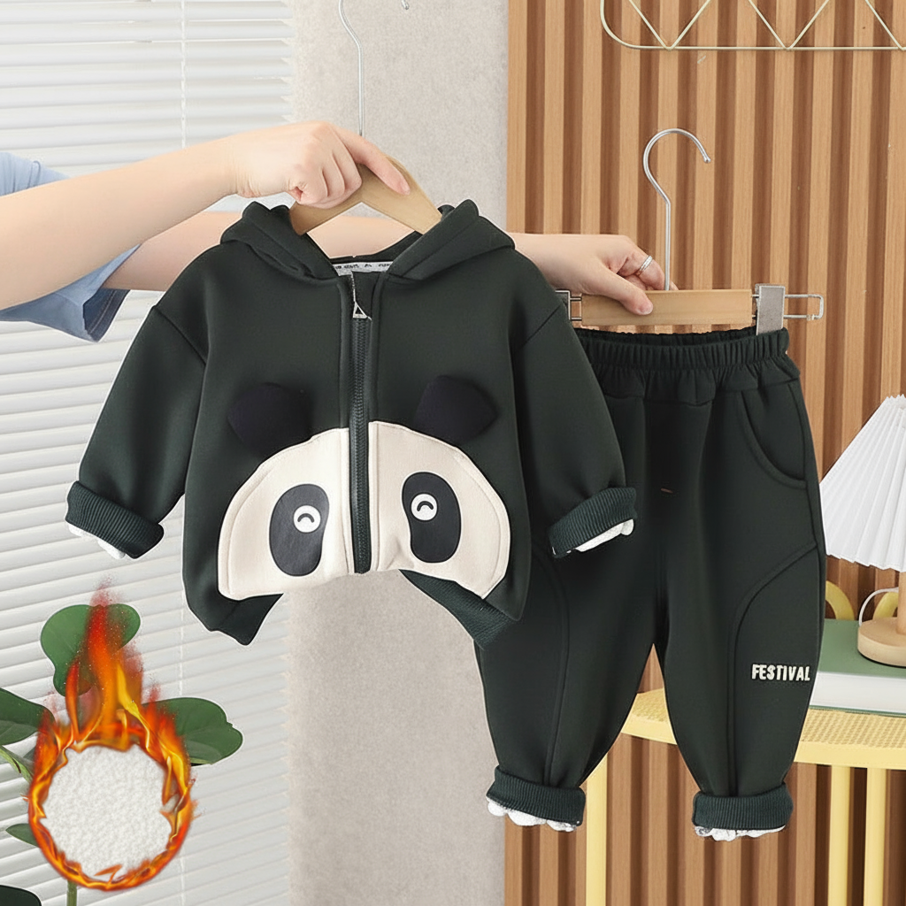 طقم باندا ولادي شتوي تقيل مبطن فرو بالكامل قطعتين ( جكيت + بنطلون)