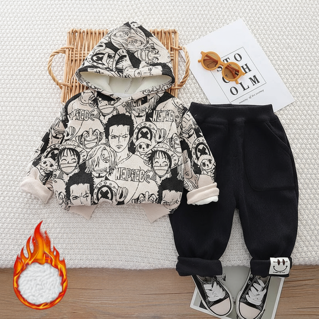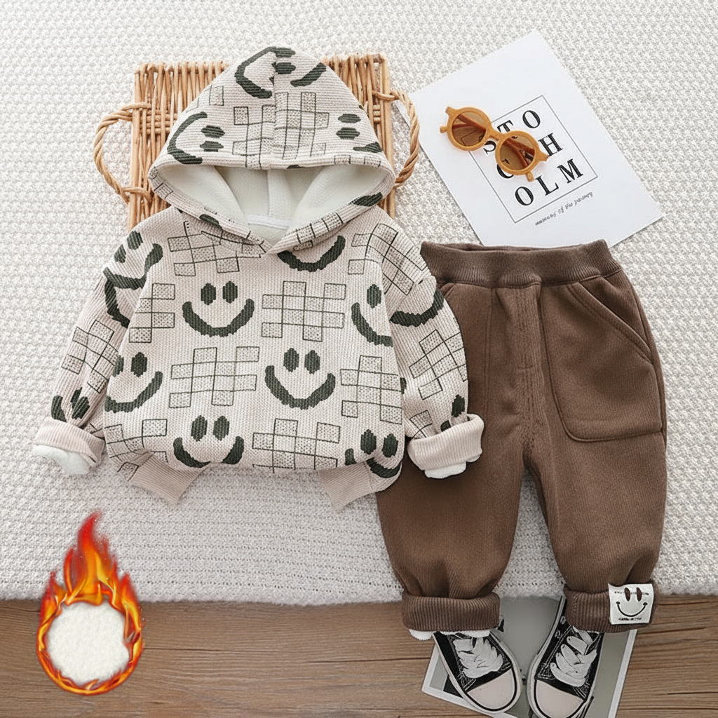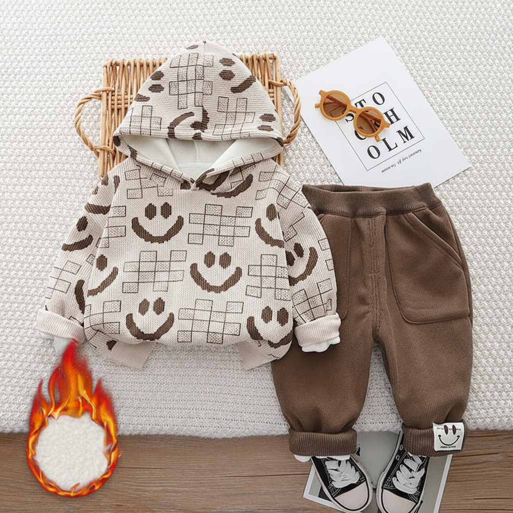 طقم ولادي شتوي تقيل مبطن فرو بالكامل قطعتين ( بلوزة + بنطلون)