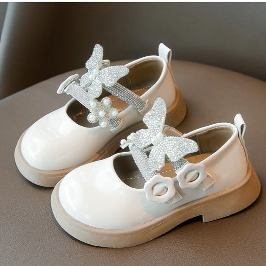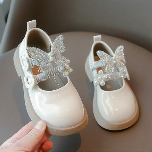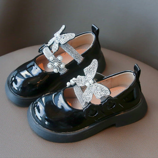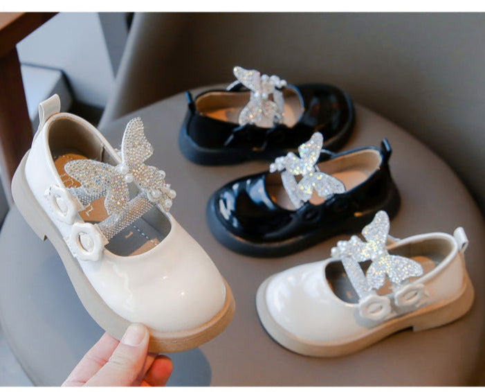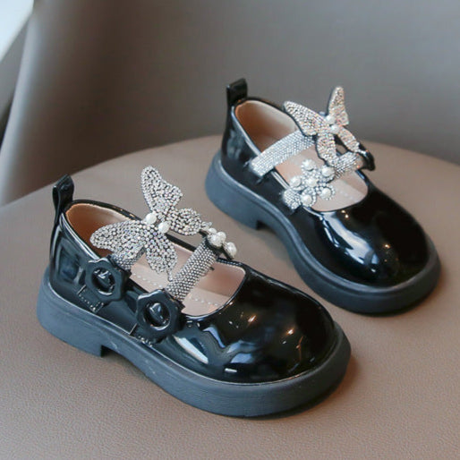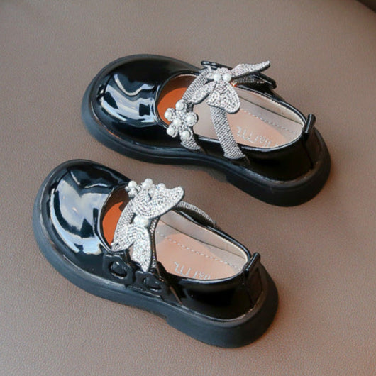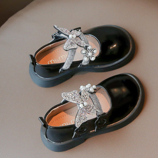 حذاء الفراشة بناتي مزين بالستراس للأعياد والمناسبات