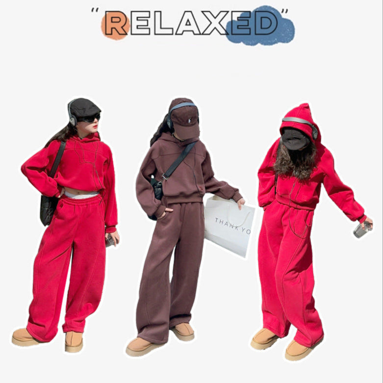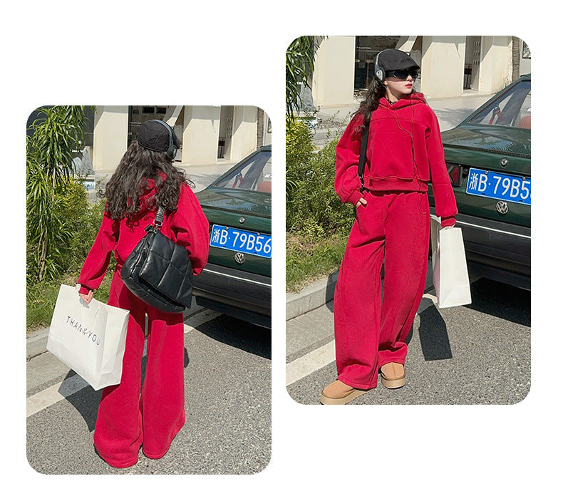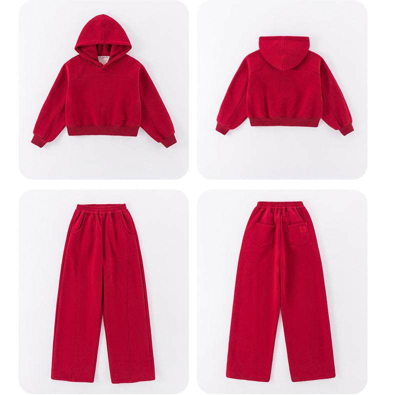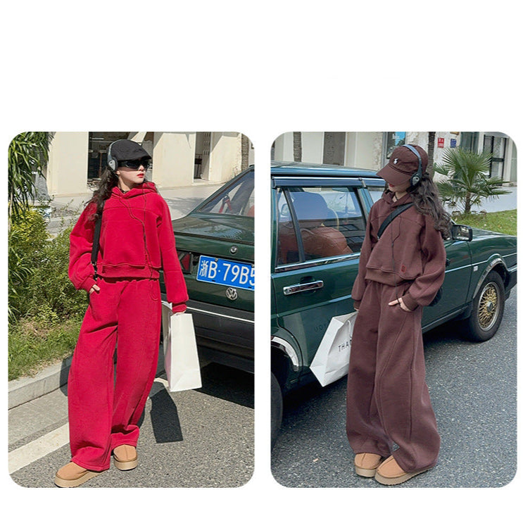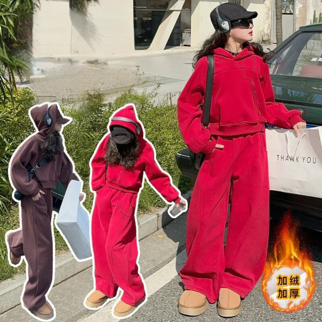 بدلة بناتي شتكوية سميكة مبطنة فرو قطعتين ( بلوزة + بنطلون)