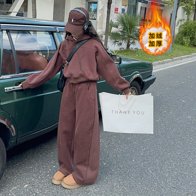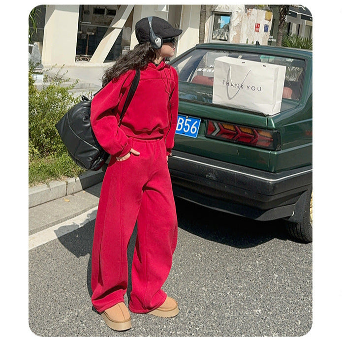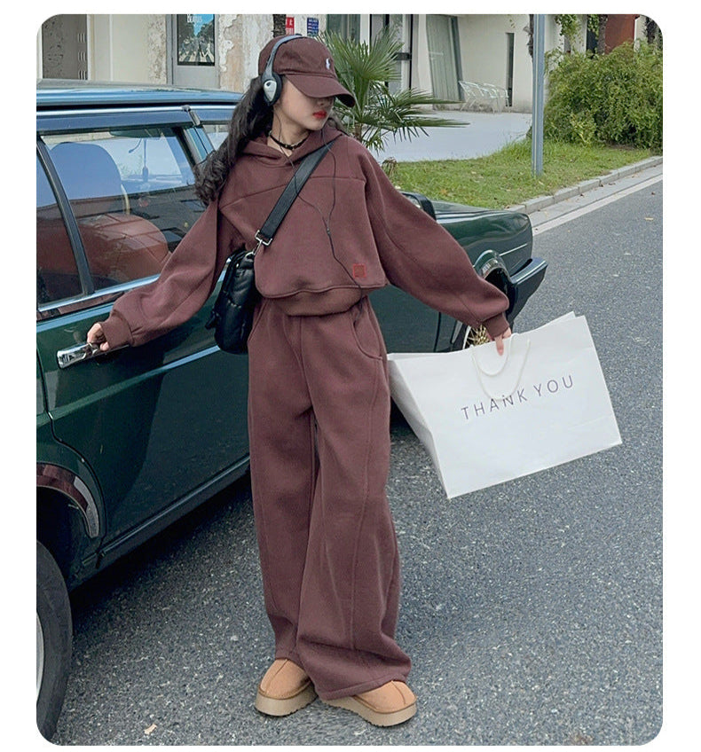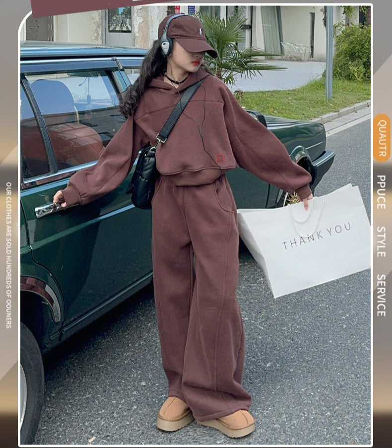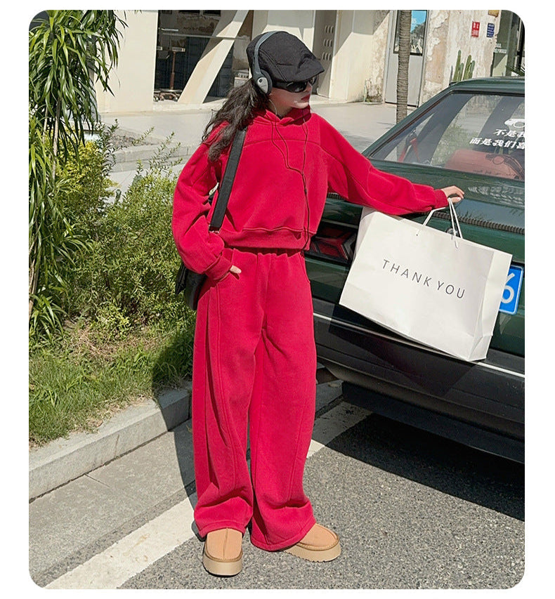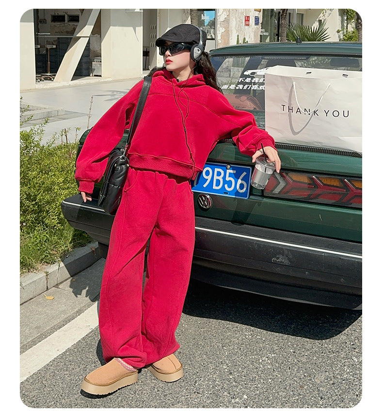 بدلة بناتي شتكوية سميكة مبطنة فرو قطعتين ( بلوزة + بنطلون)