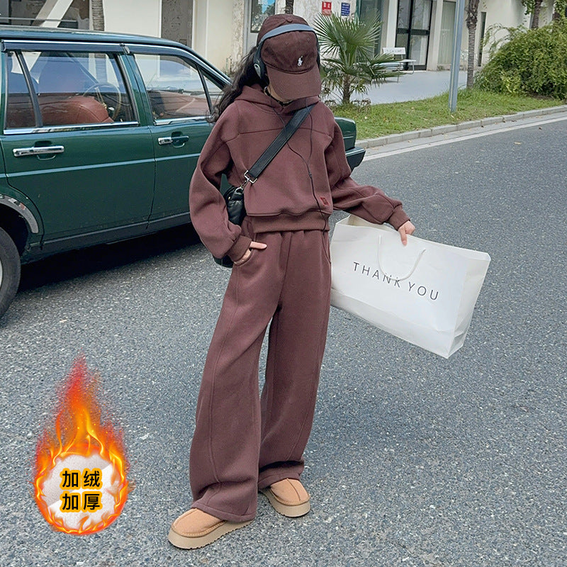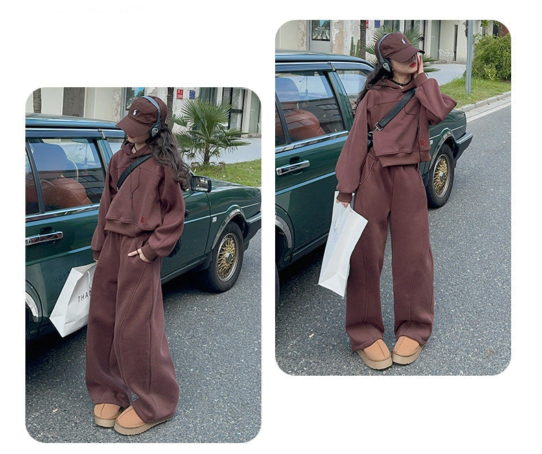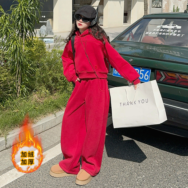 WZH191124-35 بدلة بناتي شتوية سميكة مبطنة فرو قطعتين ( بلوزة + بنطلون)
