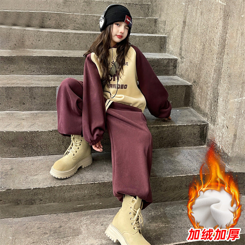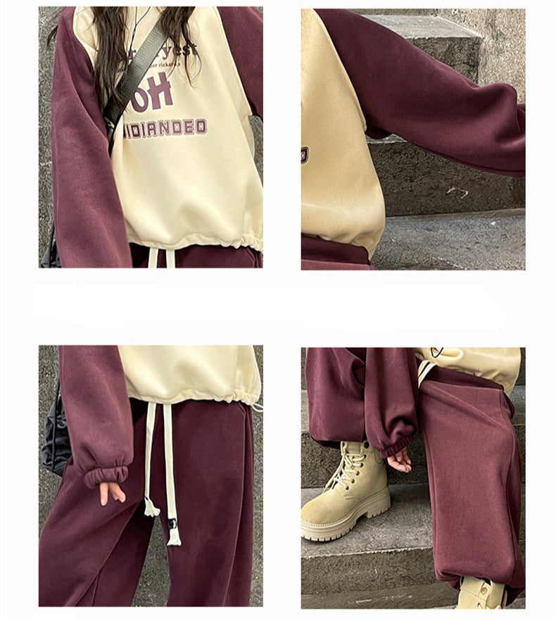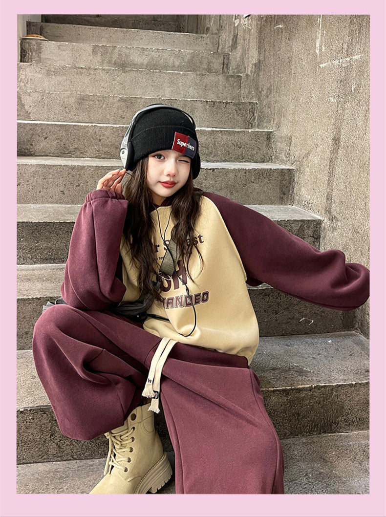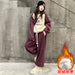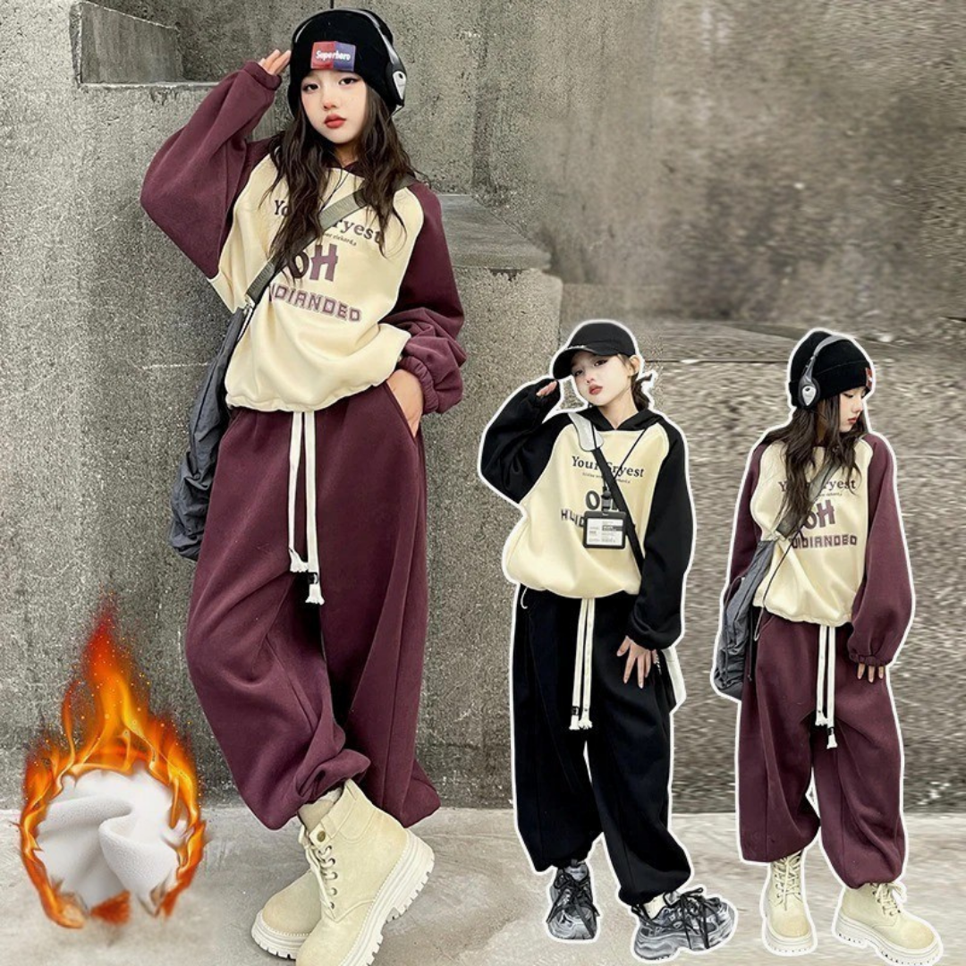 بدلة شتوي سميكة مبطنة فرو قطعتين ( بلوزة + بنطلون)