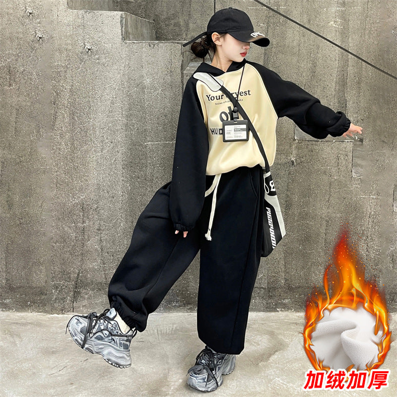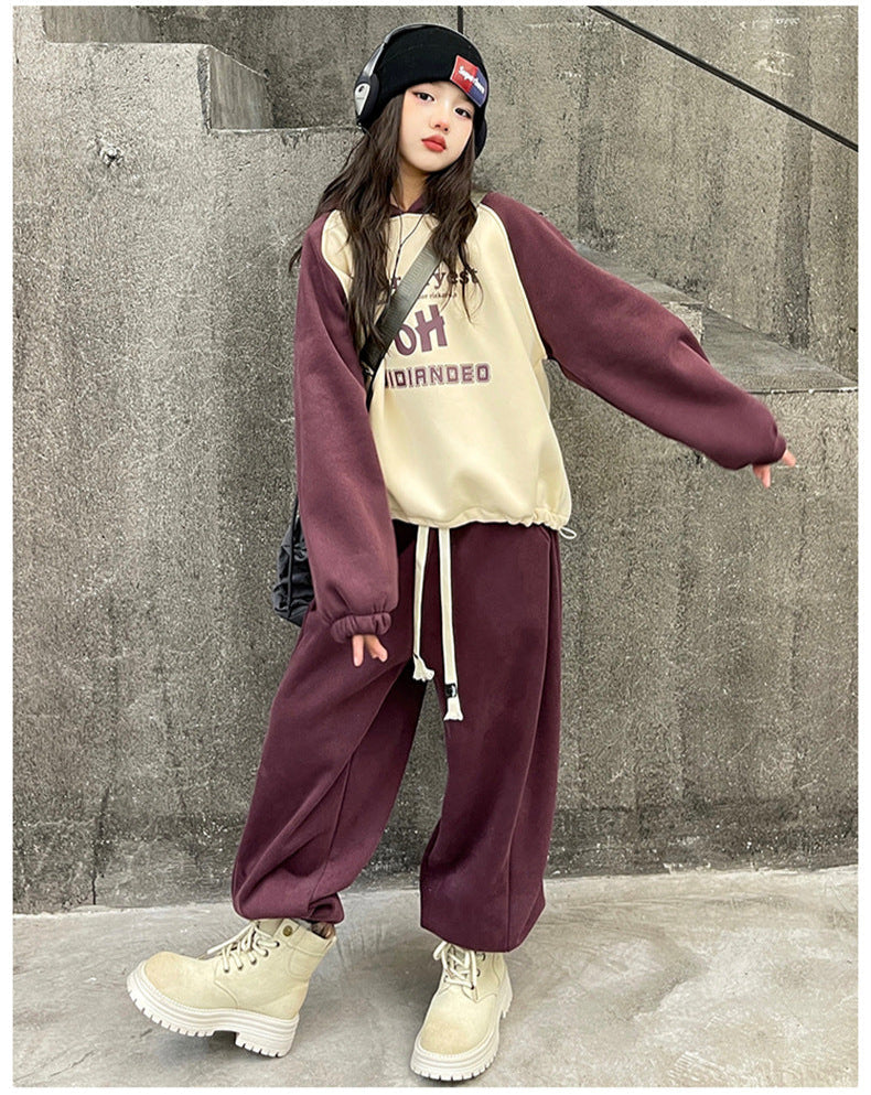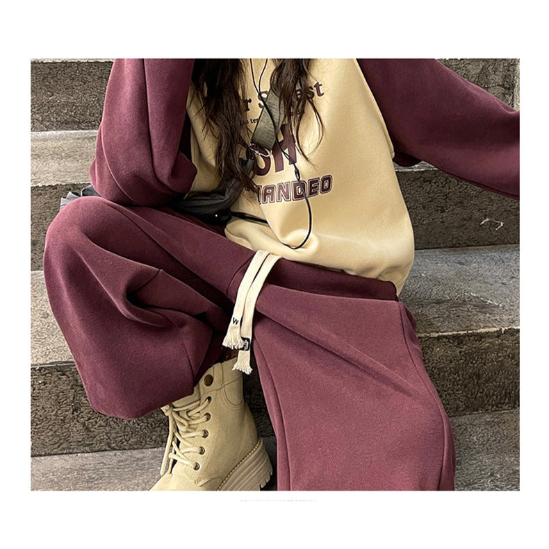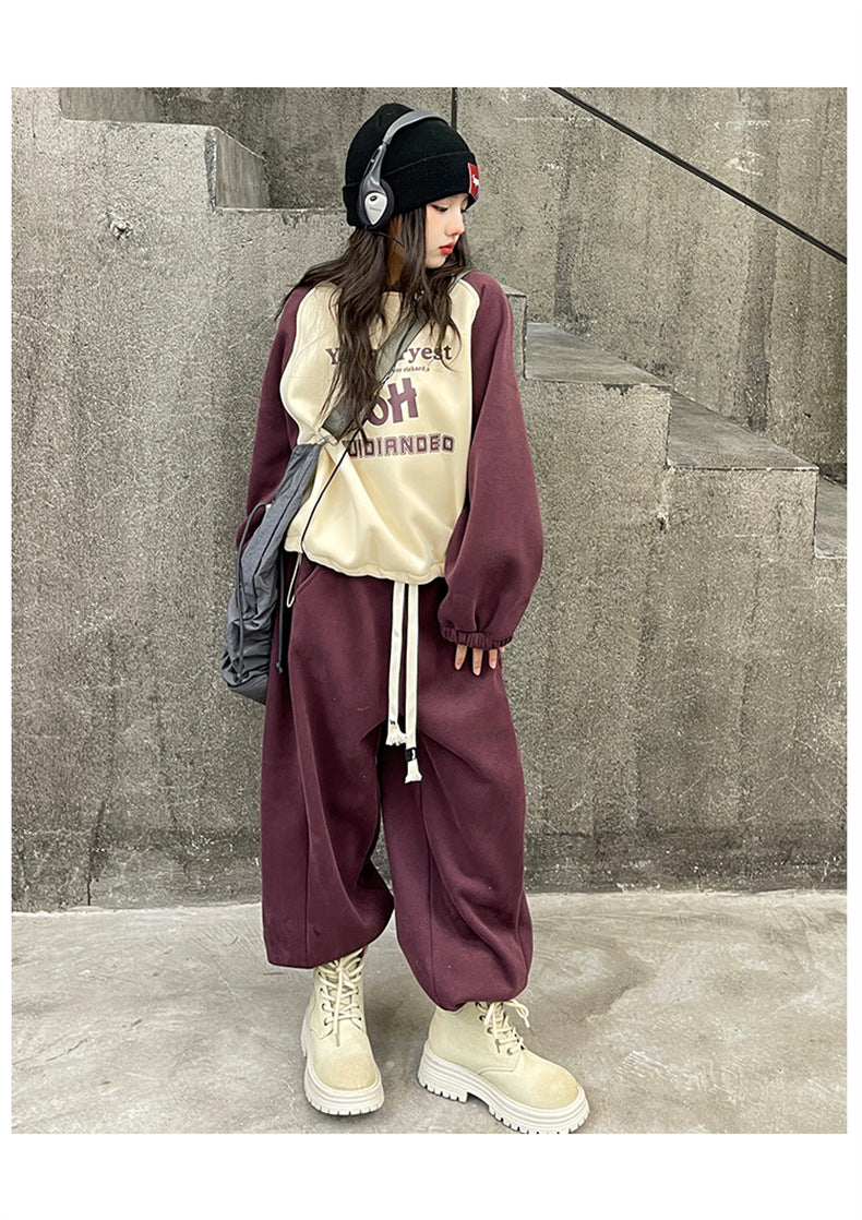بدلة شتوي سميكة مبطنة فرو قطعتين ( بلوزة + بنطلون)