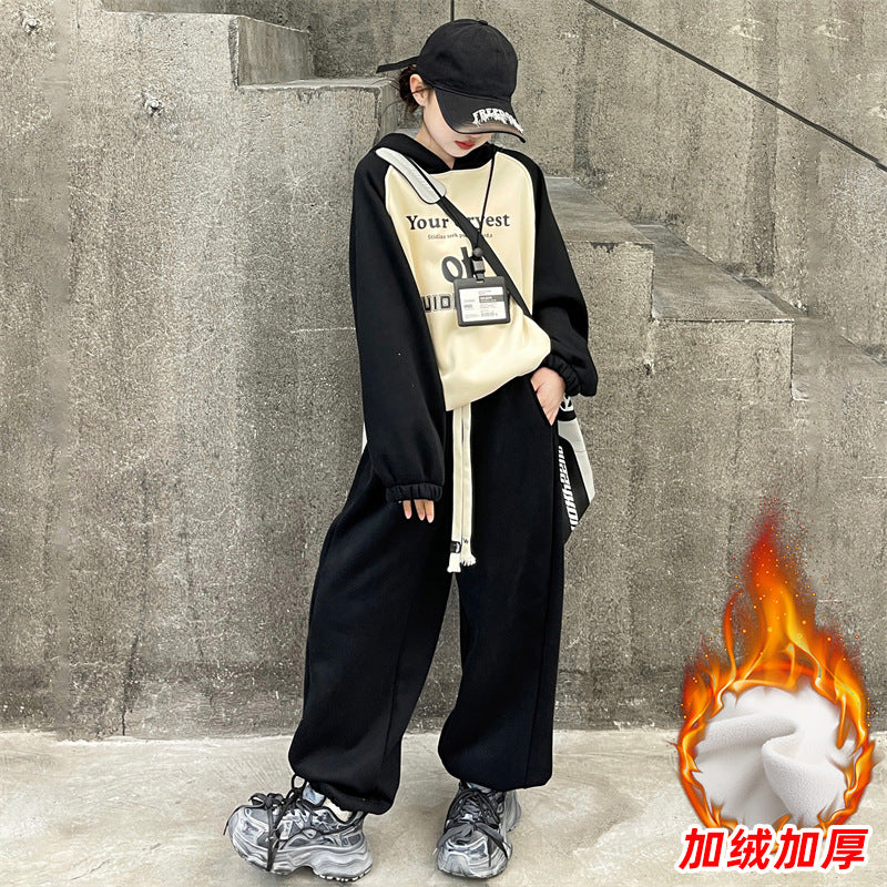 WZH191124-44 بدلة شتوي سميكة مبطنة فرو بالكامل قطعتين ( بلوزة + بنطلون)