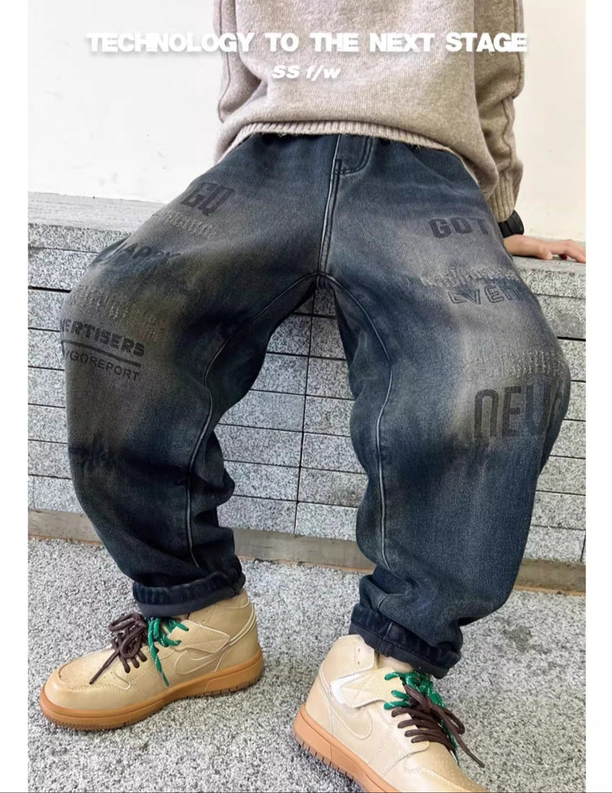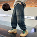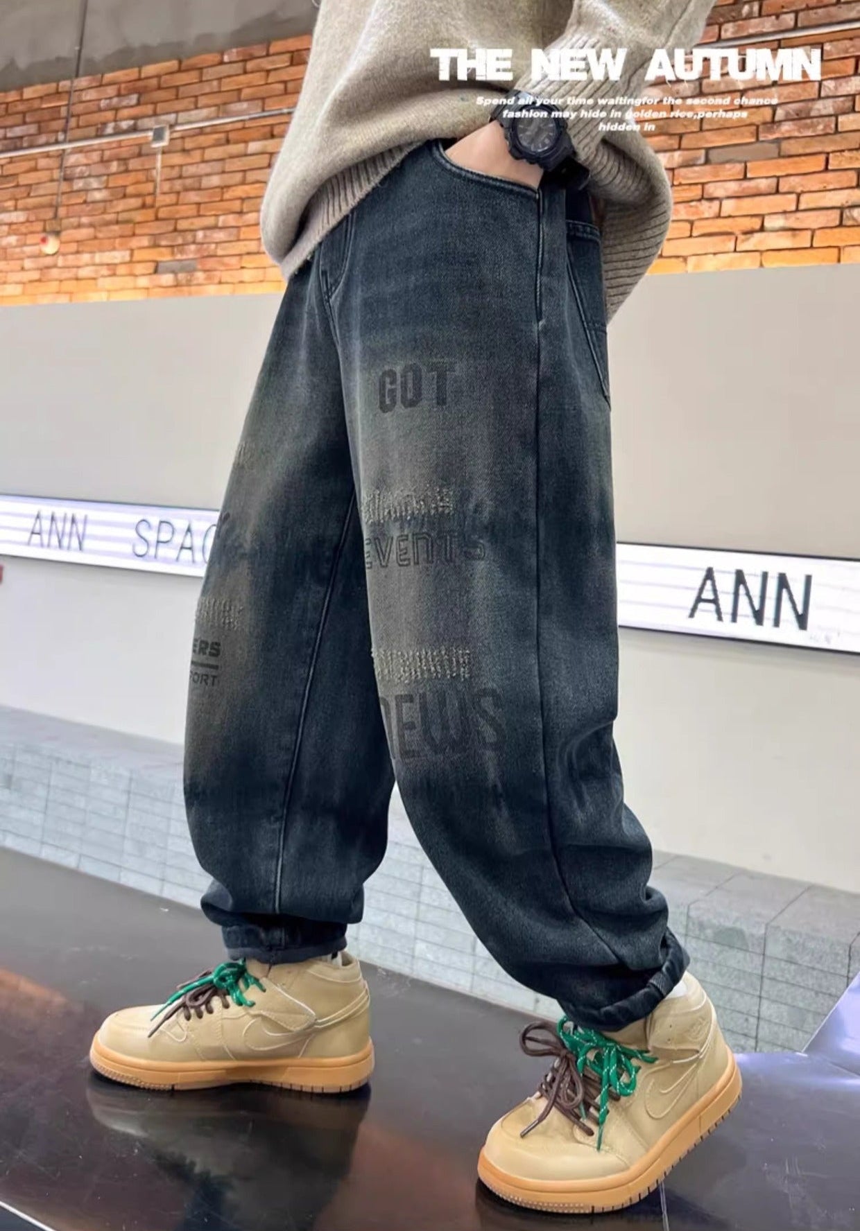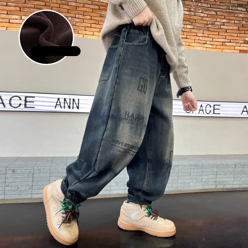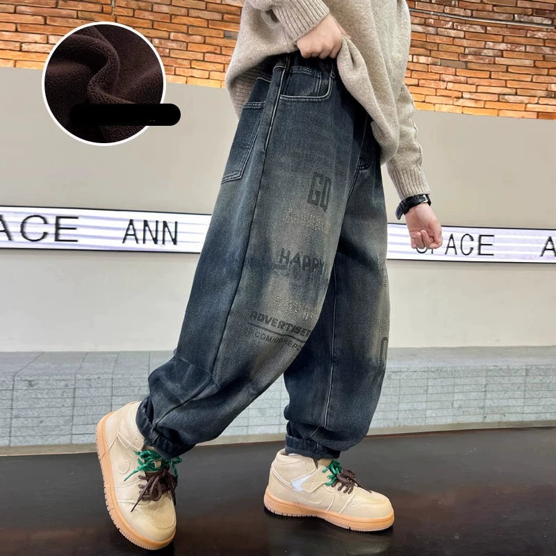 WZH301124-38 بنطلون جينز شتوي مبطن فرو