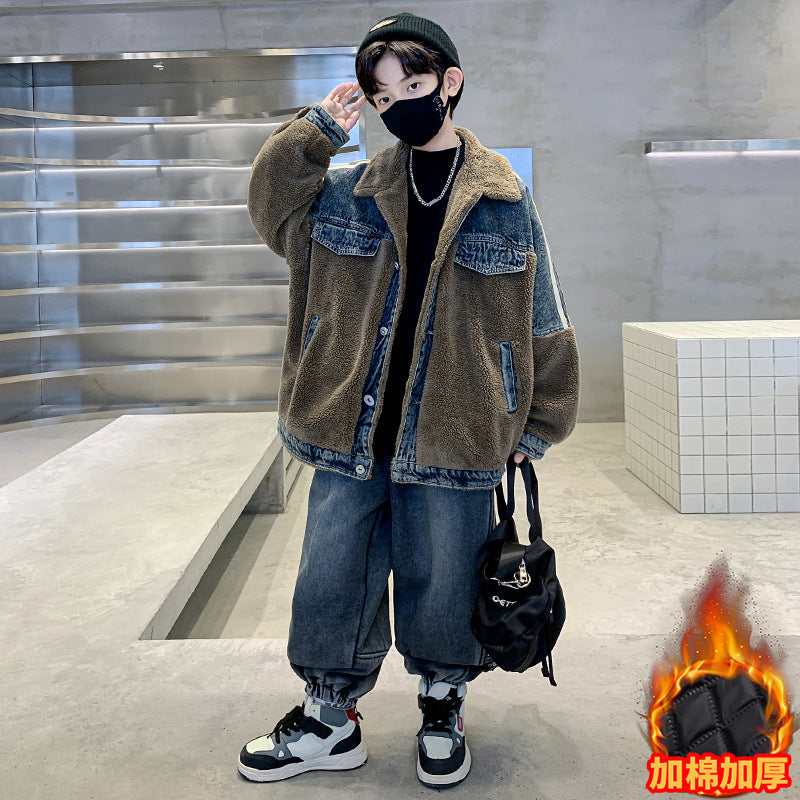 WZH301124-61 طقم شتوي ولادي قطعتين ( جكيت + بنطلون ) مبطن فرو تقيل بالكامل مناسب للثلج والاجواء شديدة البرد
