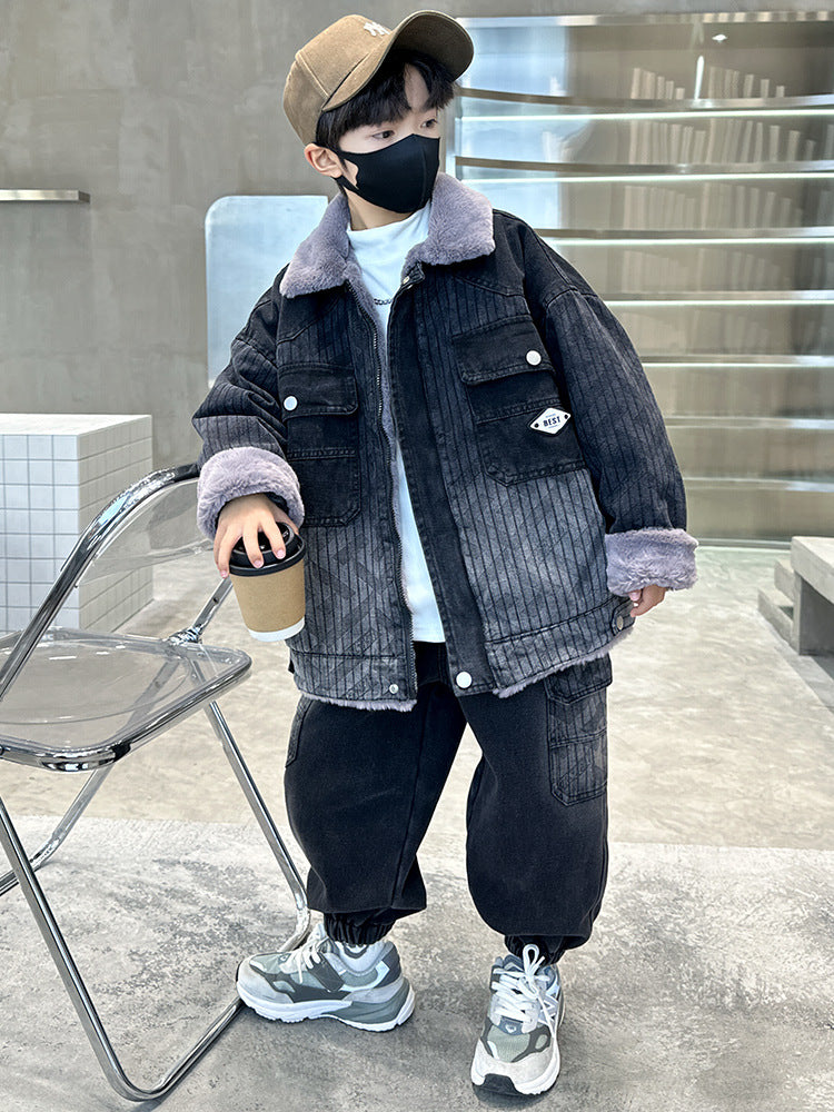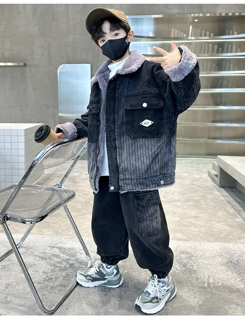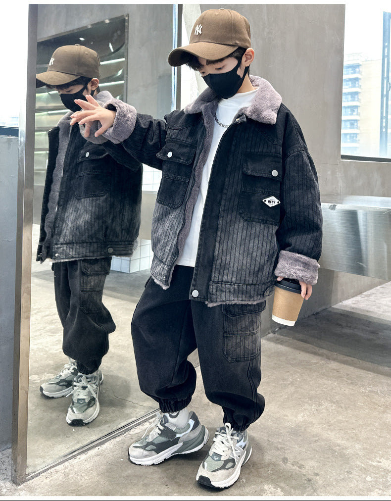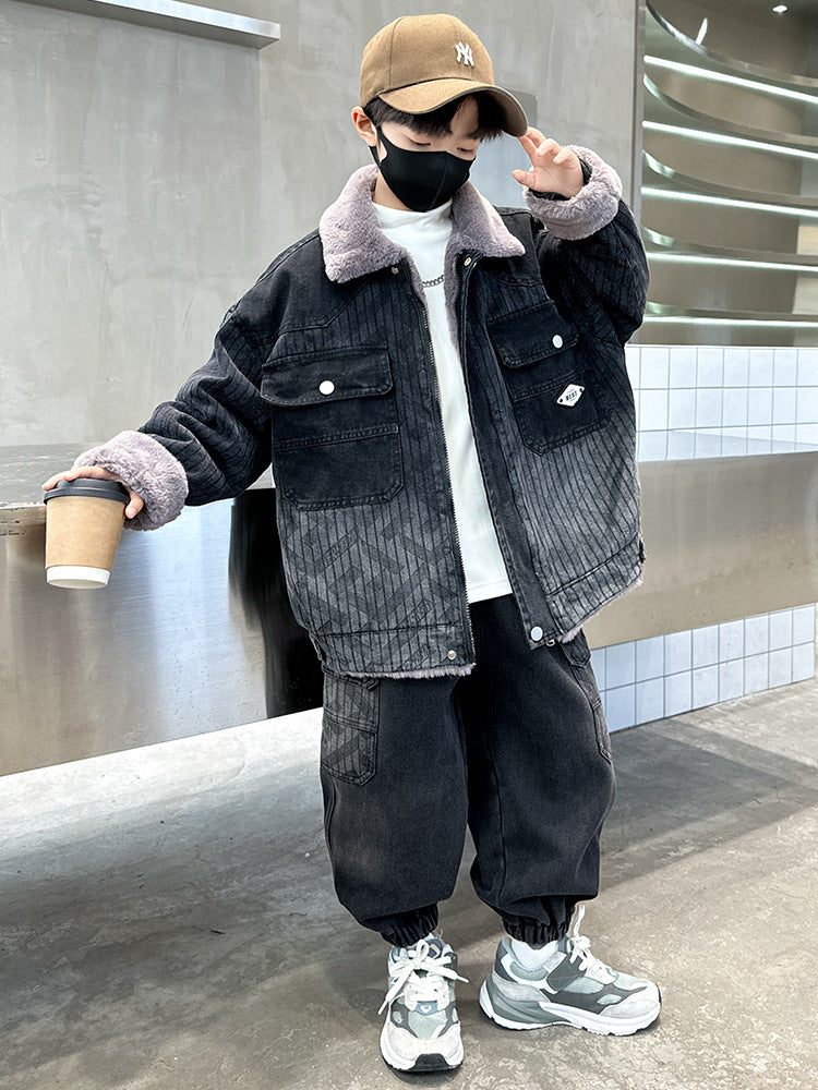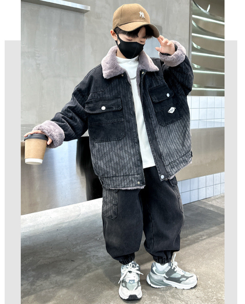 WZH301124-62 طقم شتوي ولادي مناسب للتلج وللبرد الشديد مبطن فرو بالكامل