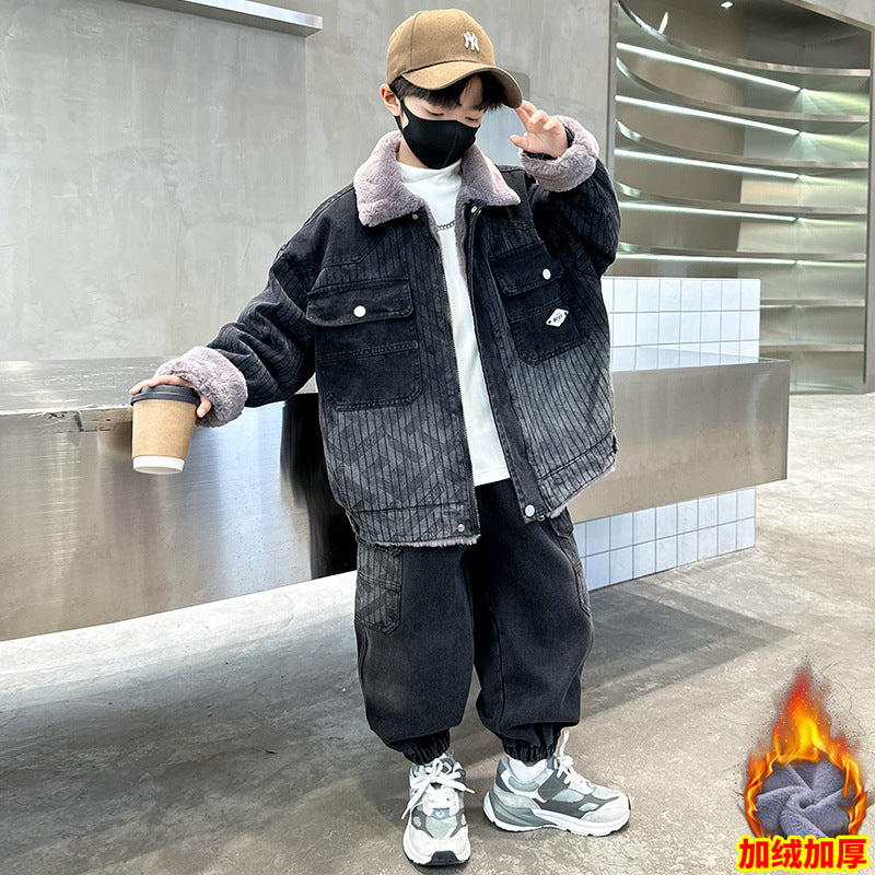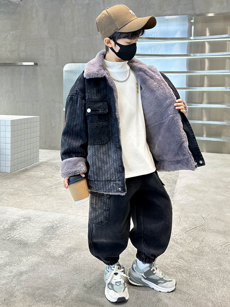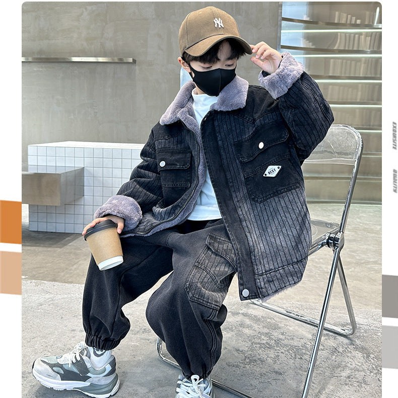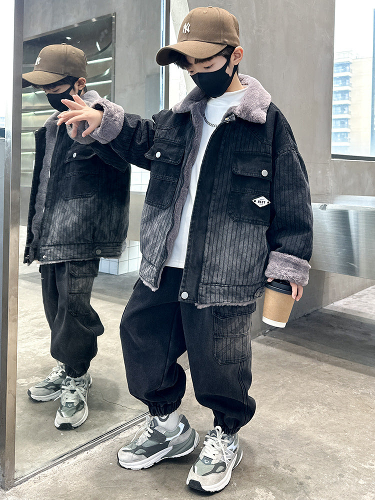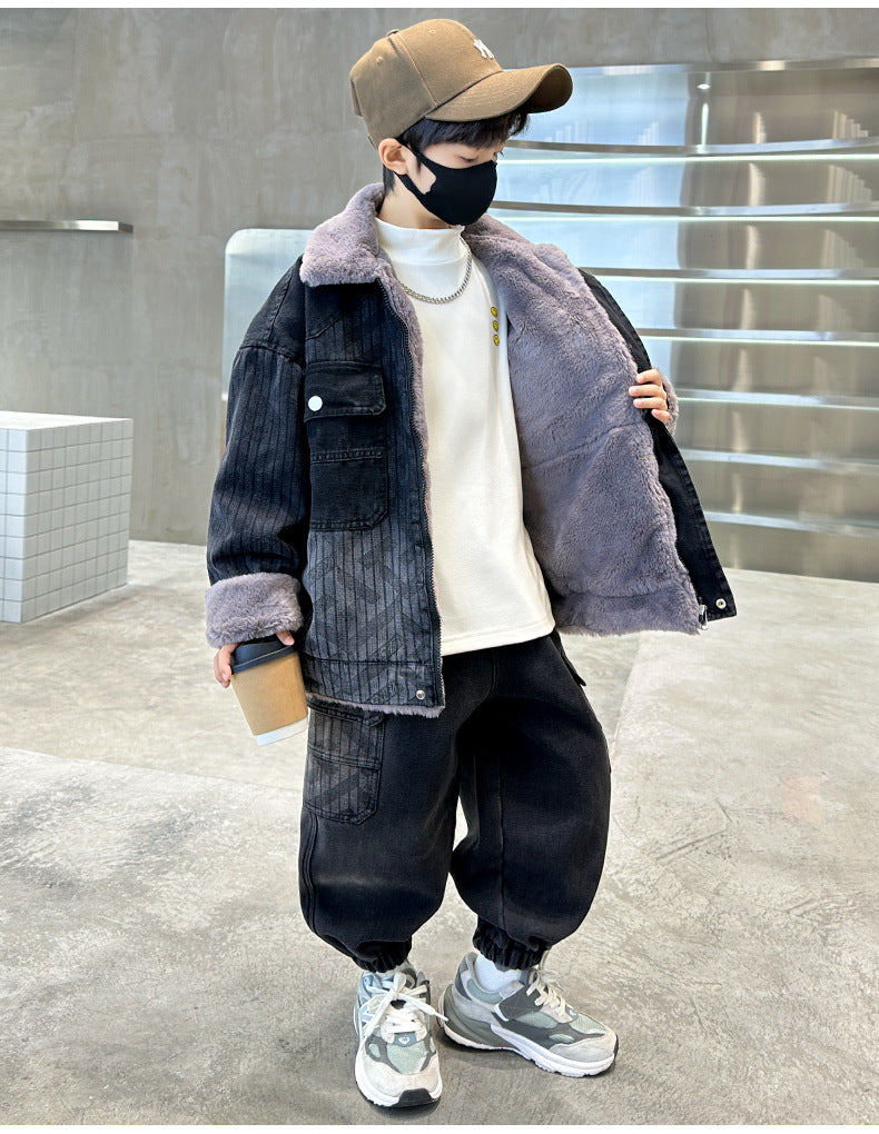 WZH301124-62 طقم شتوي ولادي مناسب للتلج وللبرد الشديد مبطن فرو بالكامل
